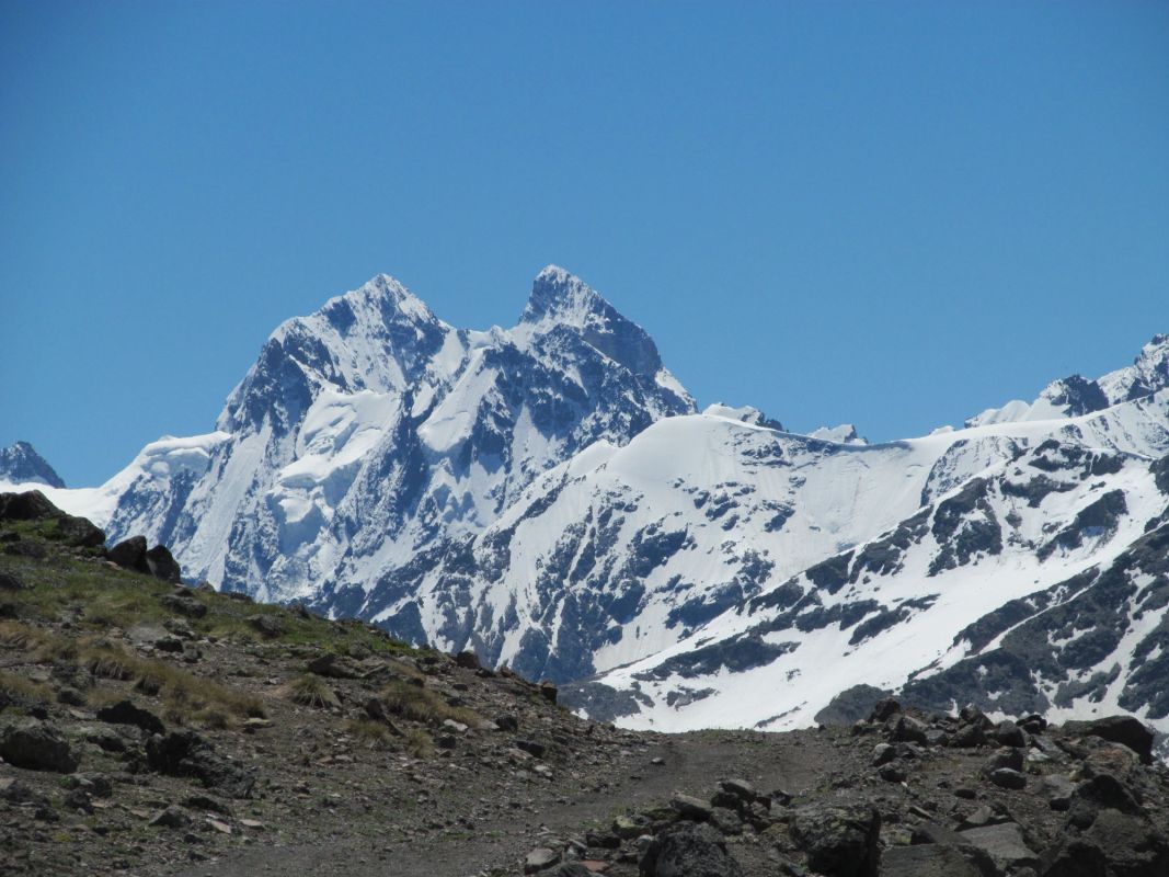 Ушба (по-грузински უშბა) - одна из самых заметных вершин Кавказских гор. Она расположена в Сванетском регионе Грузии, к югу от границы с Кабардино-Балкарской областью России. Несмотря на то, что Ушба не входит в десятку самых высоких вершин хребта, она известна как «Маттерхорн Кавказа» из-за своей живописной вершины в форме двойного шпиля. Из-за крутого спуска и нестабильной погоды Ушба считается многими альпинистами самым сложным восхождением на Кавказе.