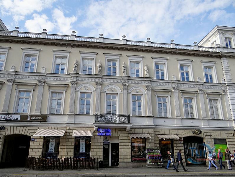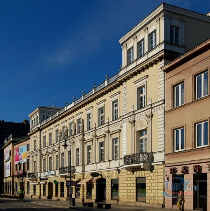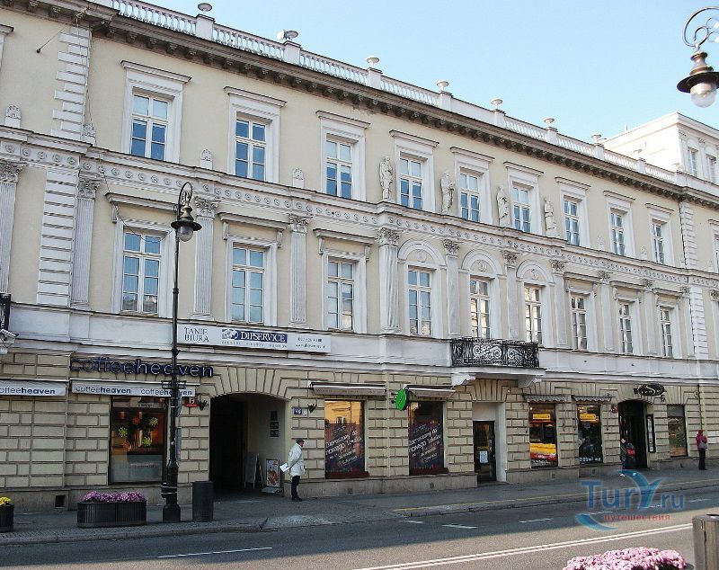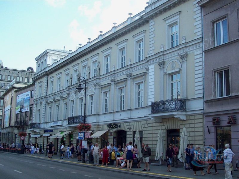 Дворец Коссаковских был построен по проекту архитектора Е. Шрегерон в период с 1780 по 1784 годы для купца Исаака Ольера. В 1848 году дворец купил Владислав Пудловский, задумавший перестроить его по проекту известного в Варшаве архитектора Хенрика Маркони, который построил дворец в стиле итальянского ренессанса, сделав его по-настоящему роскошным. Были достроены три крыла к главному зданию, балконы, балюстрада, чердак. В 1853 году дворец стал собственностью графини Александры Коссаковской, чей муж Станислав Коссаковский собрал внушительную коллекцию произведений искусства и оружия, а также создал большую библиотеку. В 1858 году дворец снова был расширен, добавились бальные залы и художественная галерея. В 1865 году Станислав Коссаковский унаследовал дворец. Во дворце стали проводиться по пятницам знаменитые литературные вечера, на которых собиралась вся интеллигентная элита Варшавы. Здесь можно было увидеть одну из лучших коллекций живописи в Польше. В 1882 году во дворце находилась студия польского художника-импрессиониста Владислава Подковинского. Именно в то время он написал свои знаменитые картины, изображавшие улицу Новы Свят. После смерти Станислава Дворец Коссаковских превратили в пансионат, который не привлекал внимания до 1930 года, пока не был куплен страховым обществом Варшавы. Дворец был разрушен во время Сентябрьской компании 1939 года и во время Варшавского восстания в 1944 году, а восстановлен в 1946-1949 годах. В последний раз дворец был перестроен в неоклассическом стиле в 1949-1950 годах.
