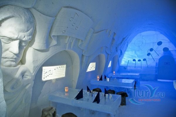 Самый большой в мире Снежный замок - это великолепный пример великого таланта и умения местных архитекторов и строителей. Внутри стен замка дети и взрослые смогут получить незабываемые впечатления. Замок был построен впервые в 1996 году и стал настолько популярным, что его стали строить каждую зиму. Дизайн замка меняется каждый год. В замке расположены Снежный отель, Снежная часовня, художественная галерея, бар, ресторан, сауна и другие интересные места, число которых увеличивается с каждым новым замком. Для детей имеется специальное место, включая парк для игры в снежки и снежные туннели. Снежный отель является одним из самых интересных мест в мире, где можно остановиться на ночь. Температура в комнатах отеля держится на уровне -5°C, но здесь имеются специальные теплые и комфортные спальные мешки. Снежная часовня - это место, куда стоит пойти в поисках покоя. Часовня в распоряжении людей всех религий. Она также используется для проведения свадебных церемоний. Снежный ресторан, украшенный ледяными скульптурами, является также незабываемым событием для посетителей. Столики его сделаны изо льда, а сидения покрыты оленьим мехом. Художественная галерея в замке заполнена прекрасными ледяными статуями, великолепие которых еще более поражает благодаря световым и звуковым эффектам.
