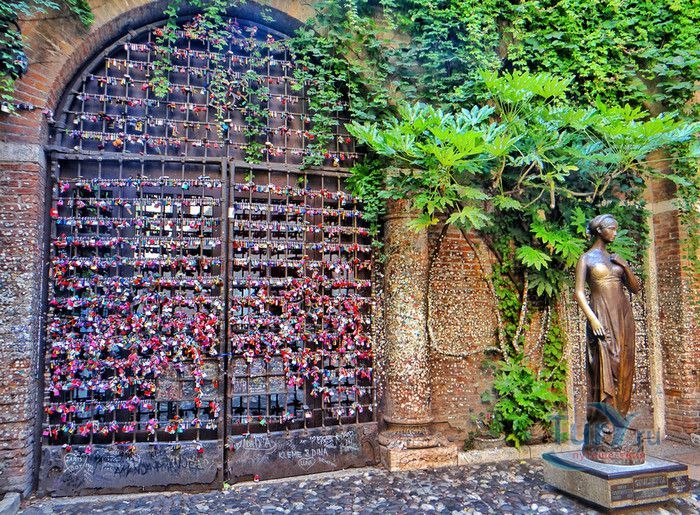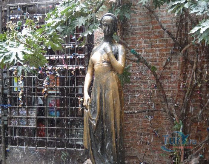 Дом Джульетты в Вероне был построен в XIII веке и принадлежал роду Даль Каппелло, который стал прообразом семьи Капулетти в бессмертном произведении Уильяма Шекспира "Ромео и Джульетта", их герб в форме мраморной шляпы высечен на арке, ведущей во внутренний двор. В 1667 году одним из представителей рода Каппелло дом был продан и затем неоднократно менял хозяев. В XIX веке в нём находился постоялый двор. К началу XX столетия дом полностью обветшал и в 1907 году был выставлен хозяевами на аукцион. Дом приобрёл муниципалитет Вероны для устройства в нём музея, посвящённого шекспировской пьесе, но длительное время здание находилось в запустении. Всё изменилось после выхода в 1936 году на мировые экраны фильма Джорджа Кьюкора "Ромео и Джульетта", вызвавшего огромный интерес у зрителей и привлекший в Верону массу туристов. В доме Джульетты начались активные реставрационные работы по приданию ему романтического вида. Фасад был украшен декоративными элементами, окна второго этажа оформили готическими трёхлистниками и был построен балкон, с которого Джульетта, якобы, говорила с Ромео. Сотни девушек, по традиции, выходят на балкон дома Джульетты, чтобы найти своего Ромео, и их совсем не волнует, что балкон был построен уже в наше время. Внутренний двор дома также был перестроен, ему придали черты соответствующей сцены из фильма Кьюкора, построили зубчатую стену, колонну под балконом, а на стену дома поместили доску со строками шекспировской трагедии. В 1972 году во внутреннем дворике была установлена бронзовая статуя Джульетты, выполненная веронским скульптором Нерео Костантини. Прикоснуться к статуе считают хорошей приметой, говорят, что потерев правую грудь бронзовой Джульетты, можно найти свою любовь. От частых прикосновений статуя была настолько истёрта, что власти города решили поместить её в музей, а во двор дома Джульетты поставить копию. Туристы также оставляют записки и пишут признания в любви на внутренних стенах арки, ведущей во двор с улицы. Для поклонников героев Шекспира в доме установлены почтовые ящики, корреспонденция доставляется в Клуб Джульетты, расположенный в двух шагах от дома Джульетты. В доме размещена экспозиция, посвящённая Ромео и Джульетте - картины, фотографии сцен из фильма Кьюкора и реквизиты из фильма Дзеффирелли "Ромео и Джульетта". Ежегодно 16 сентября в музее празднуют день рождения Джульетты, а в День влюблённых 14 февраля в доме Джульетты чествуют авторов наиболее трогательных посланий к шекспировской героине.