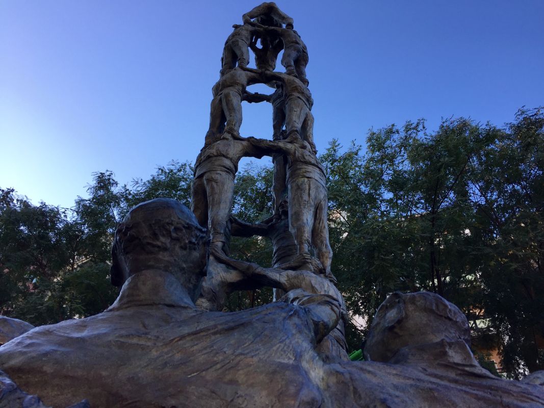 Этот памятник из бронзы, изготовленный в натуральную величину, был открыт 29 мая 1999 года, он представляет собой Касте́ли или «человеческие замки» (башни из людей, традиционно возводимые во время фестивалей в Каталонии) из 14 отдельных групп. В дополнение к основной структуре, мы можем найти представленные типичные элементы работы кастели, такие как timbaler или руководитель группы, дающей инструкции своим casteller.