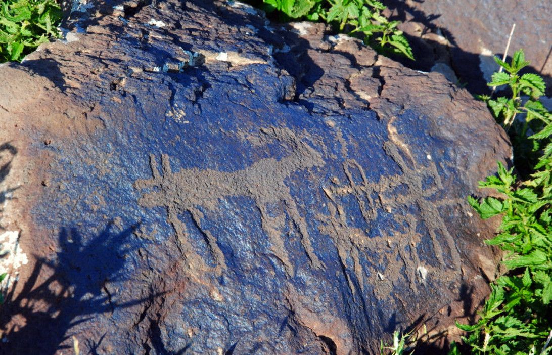 В окрестностях вулкана Аждахак обнаружено множество наскальных рисунков - геоглифов. На большинстве изображений изображены люди в сценах охоты и сражений, а также астрономические тела и явления: Солнце, Луна, созвездия, звездное небо, молния и т.д.