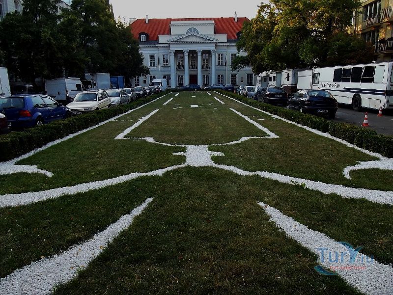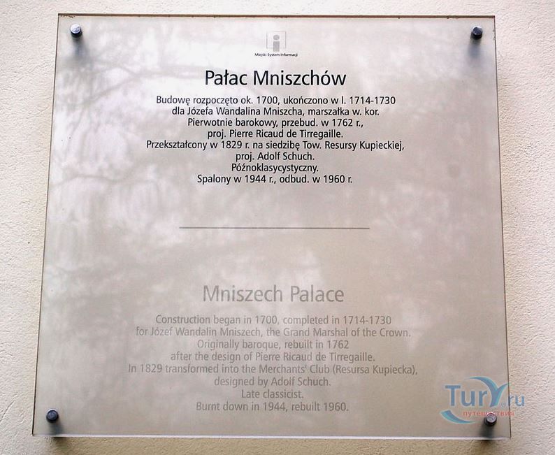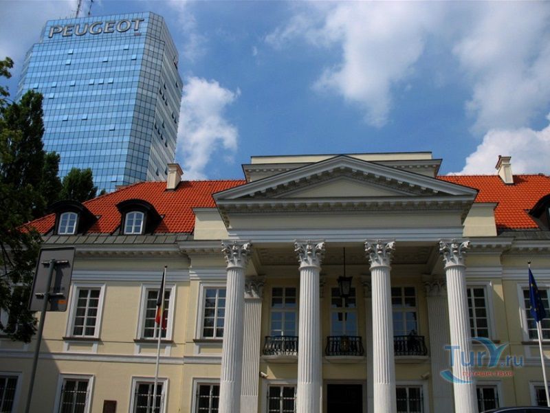 Дворец Мнишеков является историческим памятником архитектуры, в здании которого в настоящее время расположено Посольство Бельгии. В 1714-1730 годах дворец был построен под руководством талантливого архитектора Кристофа Бурхарда Миних в стиле позднего барокко, великим польским главнокомандующим, маршалом польской армии Юзефом Вандалином Мнишеком. В 1806 году во дворце по проекту известного зодчего Эрнеста Теодора Амадея Хоффмана были созданы красивые дворцовые залы. В 1829 году в здании дворца находилось Купеческое общество, которое арендовало дворцовые залы для проведения концертов, встреч, балов. В одном из залов был организован раут в честь известной Марии Склодовской-Кюри, которая в 1913 году прочитала свой доклад в Музее промышленности и сельского хозяйства. Во время Второй мировой войны здание дворца сгорело, а позже было восстановлено в стиле неоклассицизма. Дворец Мнишеков состоит из главного здания и двух взаимно перпендикулярных боковых крыльев, окружающих внутренний двор. В 1762 году дворец был перестроен по проекту архитектора Пьера Ричарда де Тиррегайле. Известный живописец Каналетто увековечил здание дворца на своих картинах. В 1805 году дворец был сожжён, а позже восстановлен. В помещении дворца был открыт концертный зал, размещалось музыкальное общество "Гармония". В 1829 году дворец был полностью перестроен в классическом стиле. До 1939 года здесь проходили лекции, встречи, лотереи, балы, юбилеи. С сентября 1939 года во дворце был создан мальтийский госпиталь, который считался филиалом Уяздовского госпиталя. В этом же году здание дворца сожгли немцы. После Второй мировой войны дворец перестроили по проекту архитектора Мечислава Кузьмы для размещения в нём Посольства Бельгии в Польше.