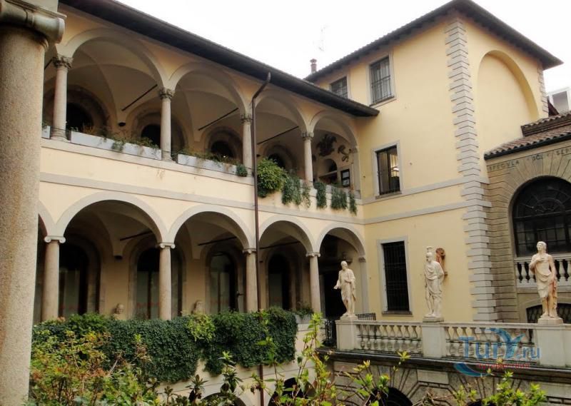 Названная в честь святого покровителя Милана Амвросия Медиоланского, Амброзианская пинакотека расположена в самом центре города и является одним из самых популярных музеев Милана. Библиотека и Пинакотека были основаны в начале семнадцатого века архиепископом Федерико Борромео, передавшим около 250 картин знаменитых художников, а вместе с ними уникальные рукописи и манускрипты. На сегодняшний день, это самая старая библиотека Италии. Сегодня Амброзиана размещается на 2 этажах в 24 залах дворца и является настоящей сокровищницей для почитателей скульптуры и живописи. Одно из самых свежих приобретений пинакотеки – копия картины Леонардо «Тайная вечеря», написанной для трапезной при монастыре Санта Мария деле Грацие. Уникальность этой копии в том, что она была написана ещё до того, как армия Наполеона сделала из трапезной конюшню и даёт возможность увидеть шедевр таким, каким изначально написал его Леонардо. Здесь же хранятся рукописи самого Леонардо. Кроме того, в залах пинакотеки выставлено около 12 тысяч рисунков, принадлежащих кисти европейских художников, в том числе произведения лучшего ученика да Винчи – Бернардино Луини. Амброзианская пинакотека хранит величайшие произведения живописи, исполненные Боттичелли, Тицианом, Леонардо да Винчи, Караваджо, Рафаэлем и другими выдающимися мастерами средневековья. Среди признанных шедевров мирового искусства в пинакотеке можно увидеть полотно Микеланджело Меризи да Караваджо «Корзина с фруктами», «Букет» Яна Брейгеля, «Святое семейство со святой Анной и Иоанном Крестителем» Бернардино Луини, «Музыканта» Леонардо да Винчи, «Женский портрет» Амброджо де Предиса, «Афинскую школу» Рафаэля. Все эти картины являются шедеврами мирового искусства, и переоценить их значение в качестве культурного наследия попросту невозможно. Музей довольно большой и прогулка по его залам занимает немало времени.
