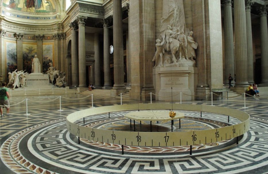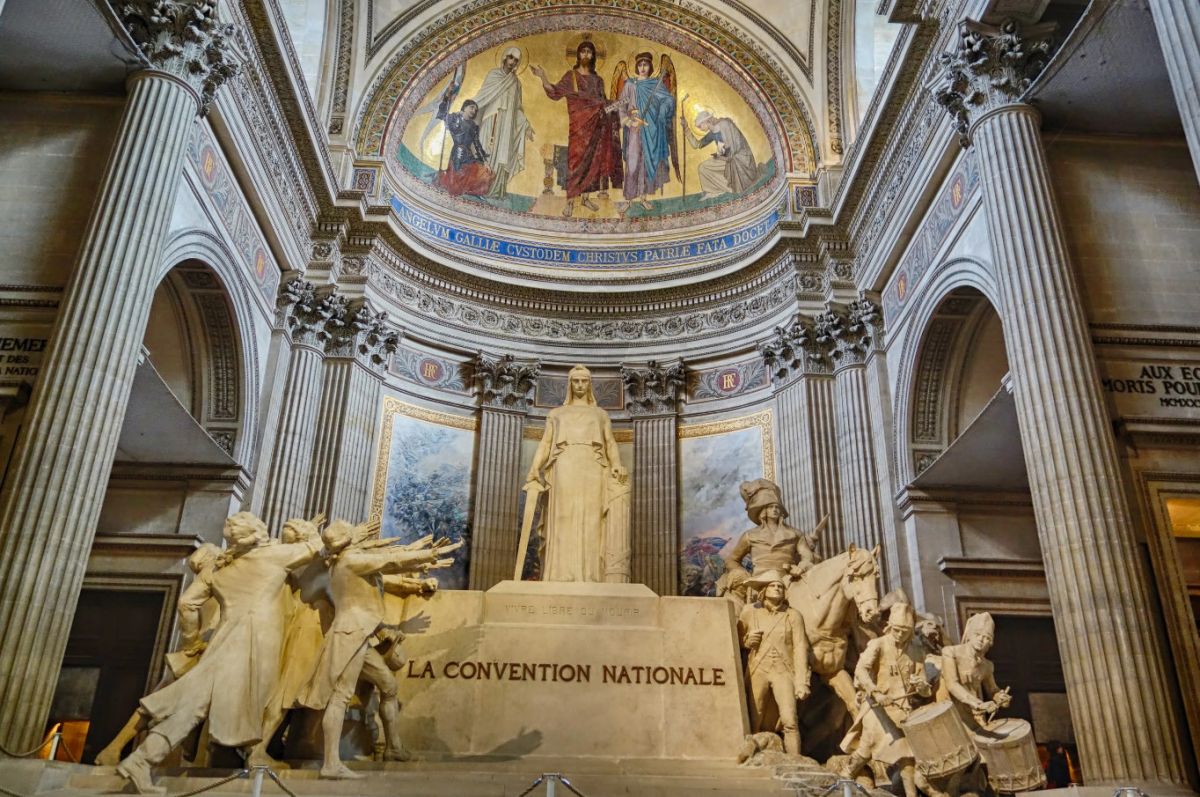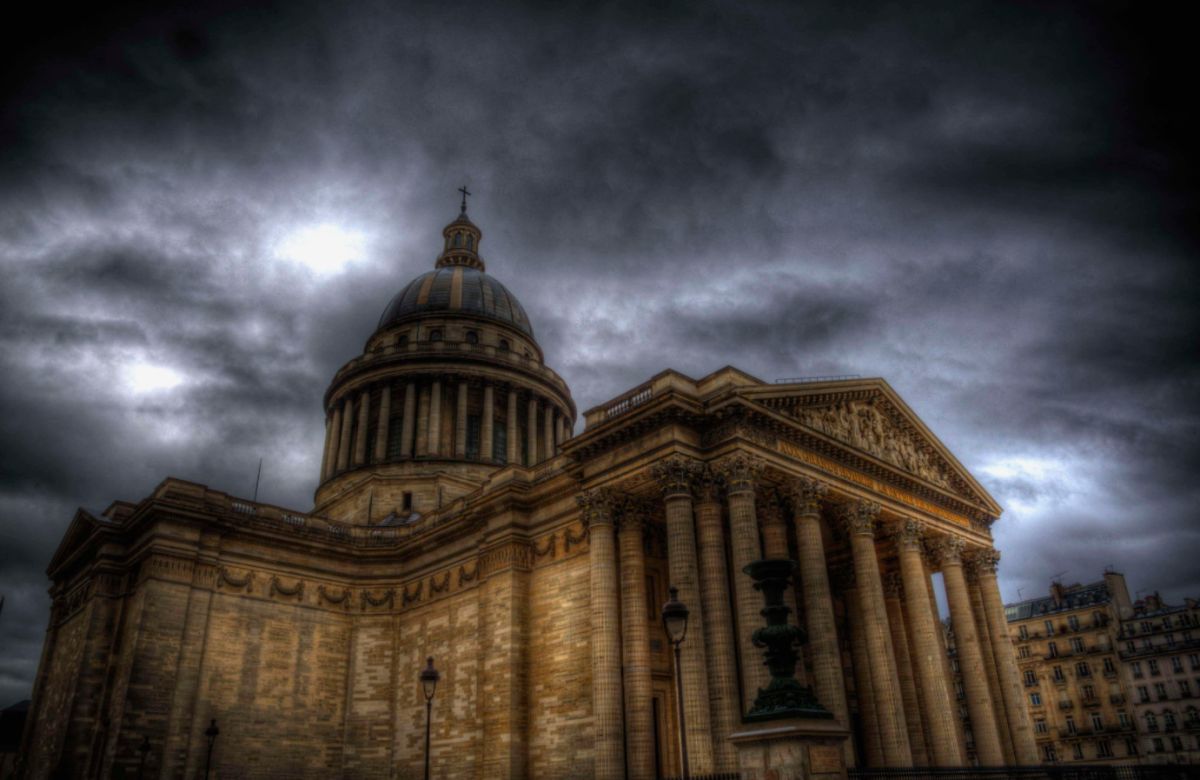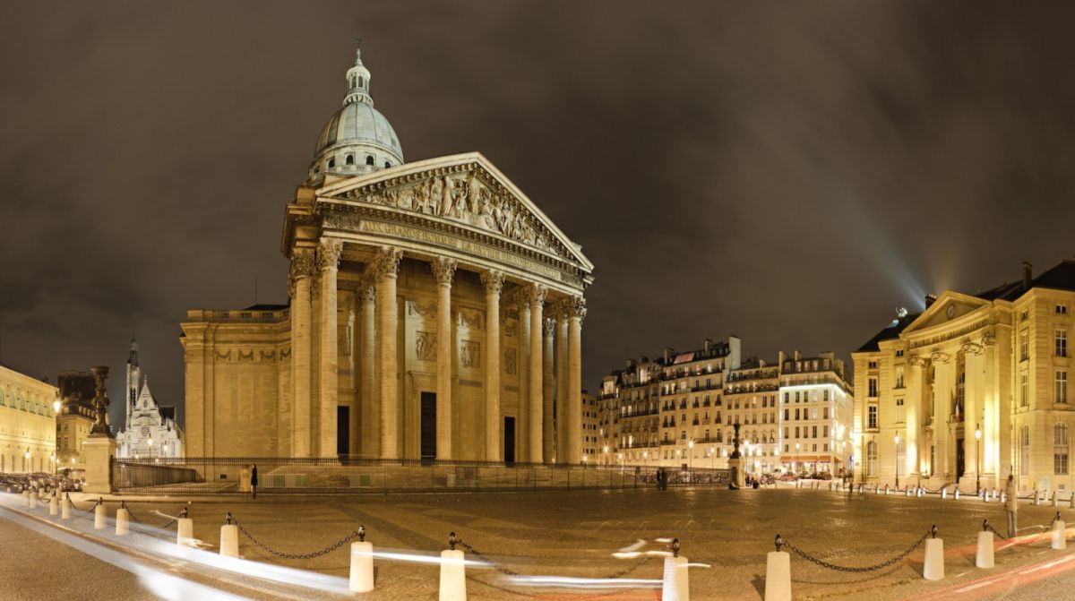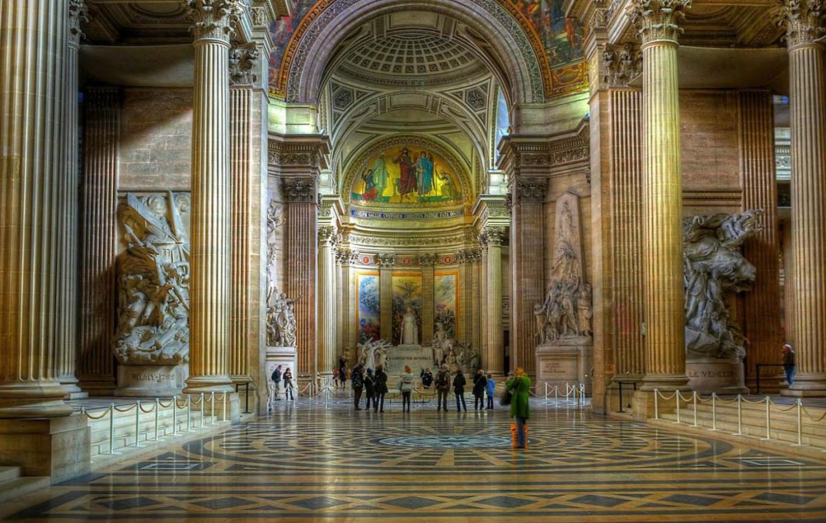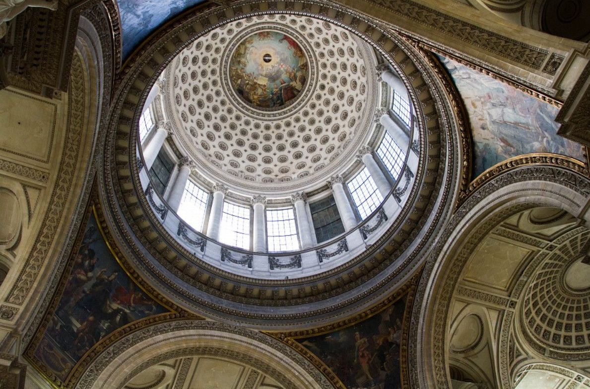 Пантеон - одна из самых известных и посещаемых достопримечательностей Парижа, он расположен в Латинском квартале, на левом берегу Сены, на холме Святой Женевьевы. Величественное здание, огромный купол которого виден из многих уголков Парижа, является ярким примером французского зрелого классицизма. Пантеон в переводе с греческого означает "Храм всех богов", задумывался он изначально не как мавзолей для "Великих людей Франции", а как церковь Святой Женевьевы. Строительство её было начато на территории аббатства Святой Женевьевы в 1758 году во исполнение обета короля Франции Людовика XV, молившего Святую Женевьеву об исцелении его от оспы, эпидемия которой в середине XVIII века свирепствовала в Париже. Людовик XV поклялся, что в случае выздоровления, он выстроит на месте разрушенной церкви в аббатстве Святой Женевьевы новый храм, достойный святой покровительницы Парижа. Король выздоровел, и спустя 11 лет после его исцеления строительство церкви было начато. Для возведения храма был приглашён архитектор Жак-Жермен Суффло, взявший за образец для здания новой церкви соборы Святого Петра в Риме и Святого Павла в Лондоне, а также Пантеон Агриппы в Риме. В ходе строительства храма неоднократно возникали трудности из-за отсутствия финансирования и протестов со стороны католического духовенства по поводу проекта церкви - по задумке архитектора храм в плане должен был иметь форму греческого креста, но под давлением церковников Суффло вынужден был внести существенные изменения в первоначальный проект. Когда церковь была практически достроена, и уже велись работы по укладке мраморного пола, были обнаружены трещины в несущих колоннах, поддерживающих купол храма. Была создана профессиональная комиссия, которая, изучив проблему, вынесла вердикт - математические расчёты Суффло, сами купол и три свода церкви, их кладка и используемый строительный материал не вызывают никаких нареканий. Всё дело в непрочности самих опорных столбов, которые и пришлось заменить. Строительство церкви было завершено в 1790 году (ни Людовик XV, ни Жак-Жермен Суффло не дожили до этого дня). Здание поражает свои масштабом и помпезностью - тройной купол храма возвышается на высоте 83 метра, диаметр купола - 23 метра, длина здания - 110 метров, его ширина - 84 метра. Центральный фасад украшен портиком с 24 коринфскими колоннами и треугольным фронтоном. Вскоре после окончания строительства началась Великая французская революция, изменившая предназначение величественного здания. Революционеры посчитали, что церковь Святой Женевьевы должна стать Пантеоном - усыпальницей Великих людей Франции. Большая часть окон церкви была заложена кирпичом, что придало светлому, пронизанному светом храму строгий и мрачный вид. С тех пор в Пантеоне стали хоронить выдающихся политиков, военных, учёных, писателей и священников, оставивших след в истории Франции. Среди удостоившихся места в некрополе - Жан-Жак Руссо, Вольтер, Виктор Гюго, Жан Мулен, Луи Брайль, Пьер и Мари Кюри, Марселен и Софи Бертло, Эмиль Золя, Александр Дюма (отец) и сам Жак-Жермен Суффло - создатель Пантеона. Были случаи, когда прах захороненных в Пантеоне людей по истечении времени оттуда удалялся. Так, Оноре де Мирабо, один из самых знаменитых ораторов и политических деятелей Франции, и Жан-Поль Марат, герой Великой французско