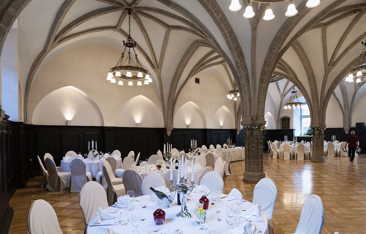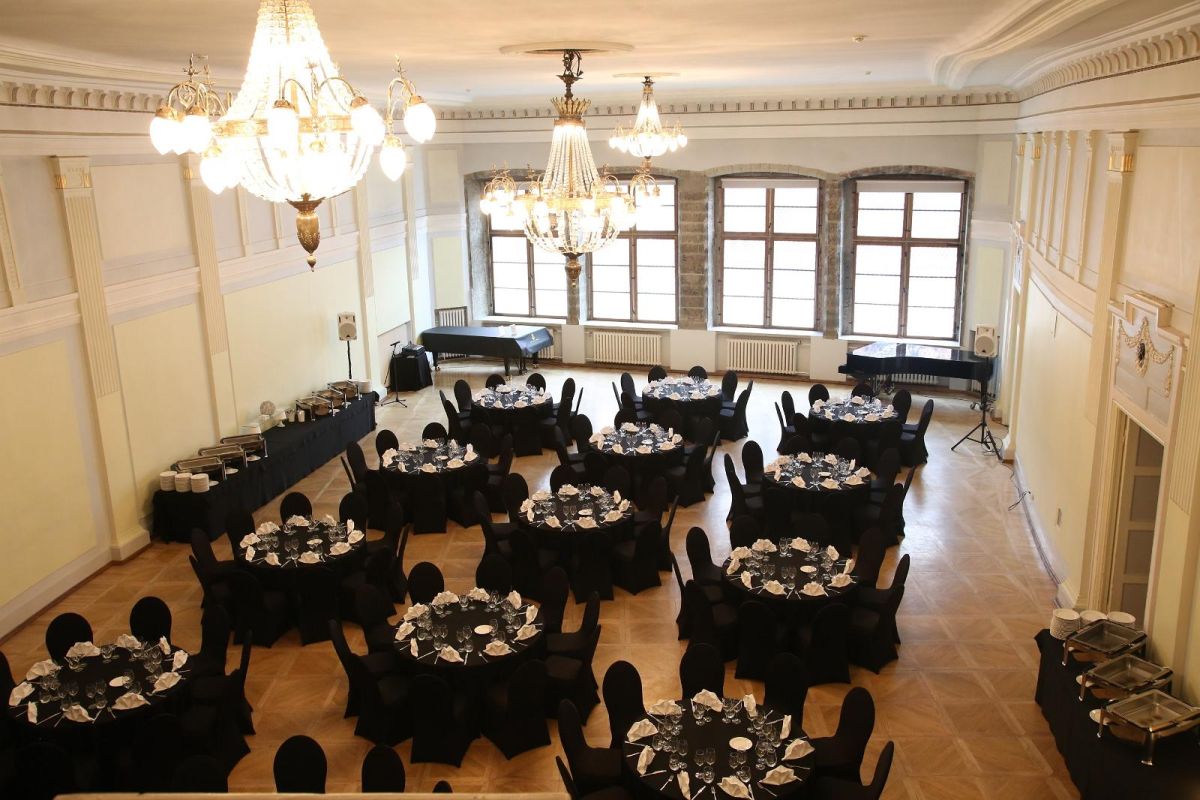 Надо просто взглянуть на причудливо украшенные красно-зеленыедвери с позолотой этого дома, и вы поймете, почему его фотографии стали открытками-визитками Таллинна. Подстать экстерьеру здания и его интерьер.