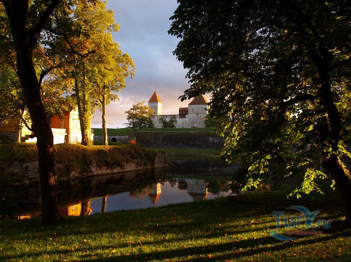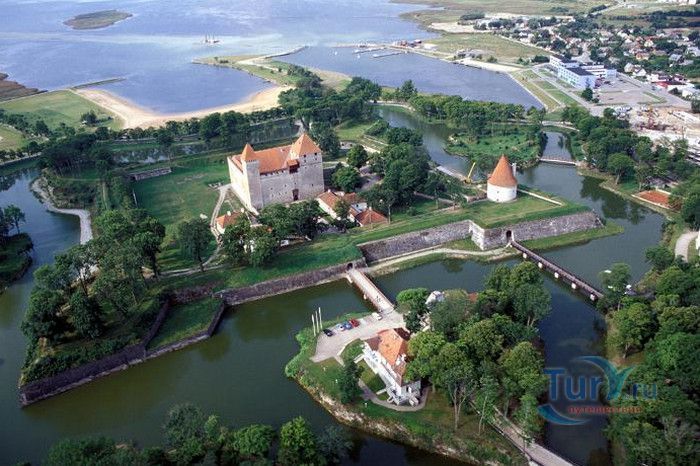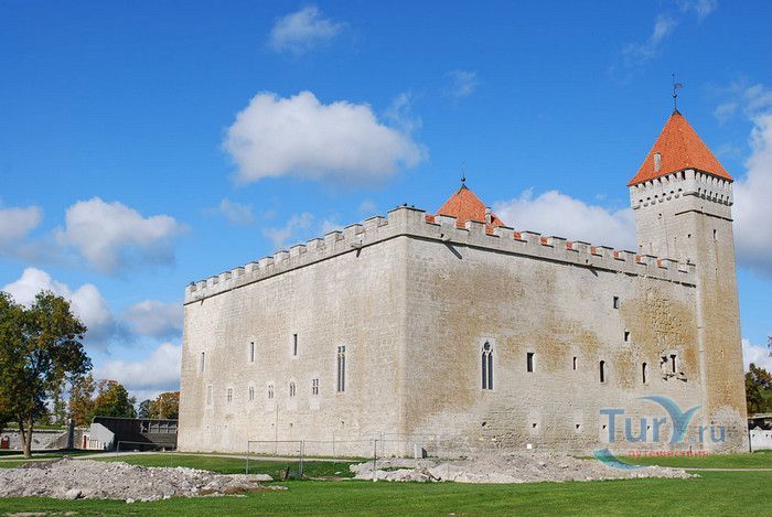 Замок Курессааре расположен в Эстонии, на острове Сааремаа, в городе Курессааре, до 1917 года носившего название Аренсбург, в 1952-1988 годах - Киингисепп. Начиная с середины XIV столетия до начала Ливонской войны замок Курессааре являлся резиденцией Сааре-Ляэнемаского епископа. Предположительно, строительство замка было начато в 1322-1338 годах, во время правления епископа Якоба. После того, как были заложены фундаменты и возведена массивная квадратная башня Стурвольт в северном углу замка, из-за вспыхнувшего восстания Юрьевой ночи 1343-1345 годов, работы были прерваны. Основной период строительства пришёлся на 1345-1365 годы. В восточном углу крепостной стены была построена высокая четырёхгранная башня, за мощными стенами был вырыт глубокий ров, через который к воротам замка вёл подъёмный мост. В 30 годах XV века вокруг замка была построена обводная стена с оборонительными Артиллерийской и Пороховой башнями, с бойницами для огнестрельных орудий. В 1559 году последний епископ Иоганн фон Мюнхгаузен продал Курессааре датскому королю Фредерику II, который, в свою очередь, передал Сааремаское епископство вместе с замком Курессааре своему младшему брату герцогу Магнусу. В 1600-1640 годах датчанами была модернизирована система укреплений замка, построены земляные валы с четырьмя мощными угловыми бастионами и водяным рвом. В 1645 году, по Брёмсебрускому мирному договору, остров Сааремаа перешёл во владение Швеции. В 1684 году в замке по проекту французcких фортификационных инженеров Эрика Дальберга и Пауля Эссена были построены мощные, сохранившиеся до сегодняшнего дня, бастионы и равелины. В 1706 году работы были прерваны, так и недостроенным остался Юго-западный равелин. Во время Северной войны, 8 сентября 1710 года, шведский гарнизон, не оказывая сопротивления, сдал крепость российским войскам. Весной 1711 года российский гарнизон покинул крепость, при этом были взорваны крылья бастионов, Артиллерийская башня, уничтожены часть сводов конвентского дома и интерьер Оборонительной башни. В конце XVIII - начале XIX веков в замке шли восстановительные работы, а в 1835 году замок Курессааре был продан Российской империей Сааремааскому рыцарству за 3000 рублей. В 1903-1912 годах конвентский дом был полностью отремонтирован, в 1968 году были начаты восстановительные работы в крепости. Сегодня замок Курессааре - единственная сохранившаяся во всей Прибалтике средневековая крепость, представляющая собой архитектурный памятник международного значения. В замке располагается музей Сааремаа, посвящённый истории и природе острова.