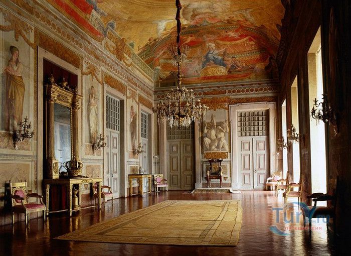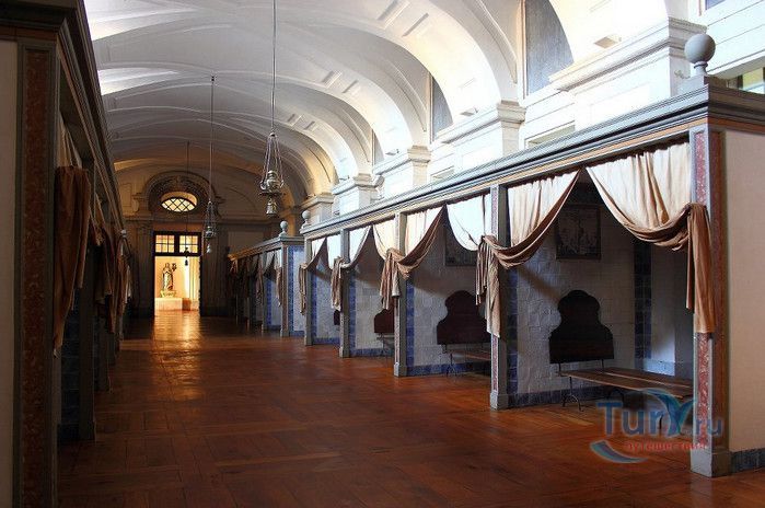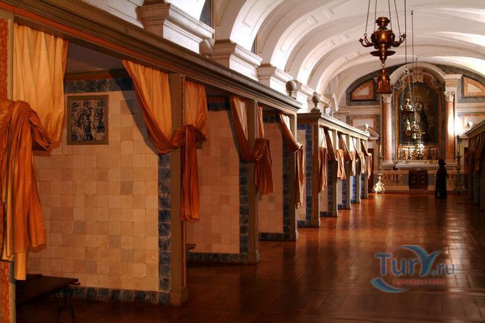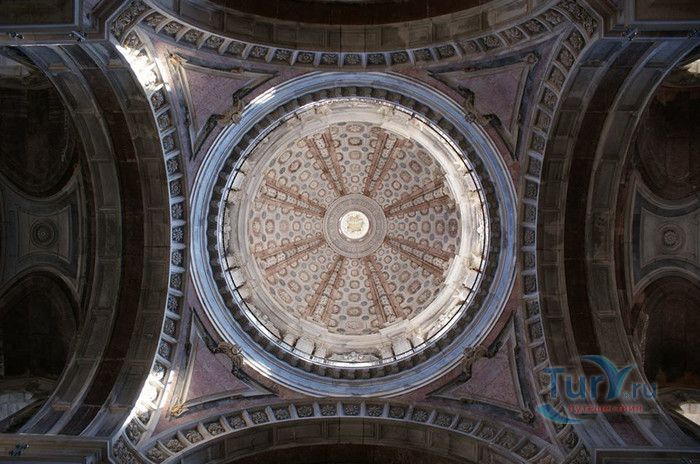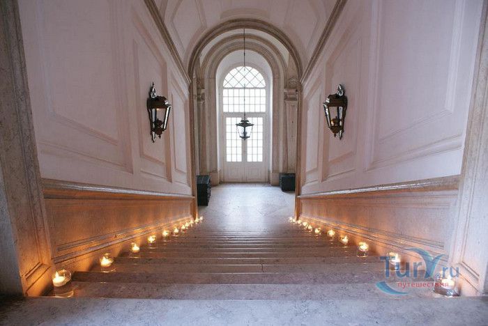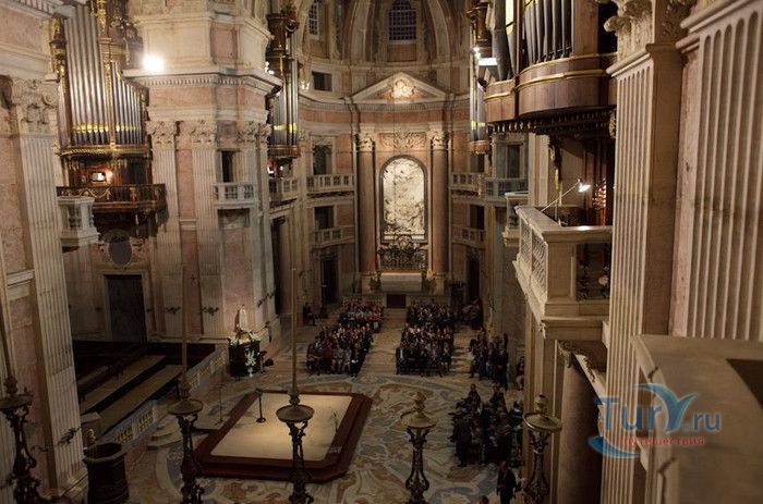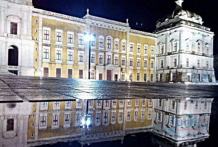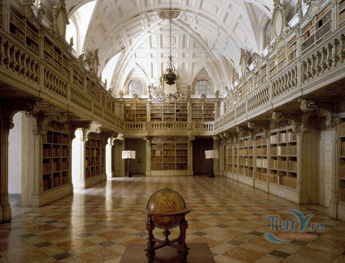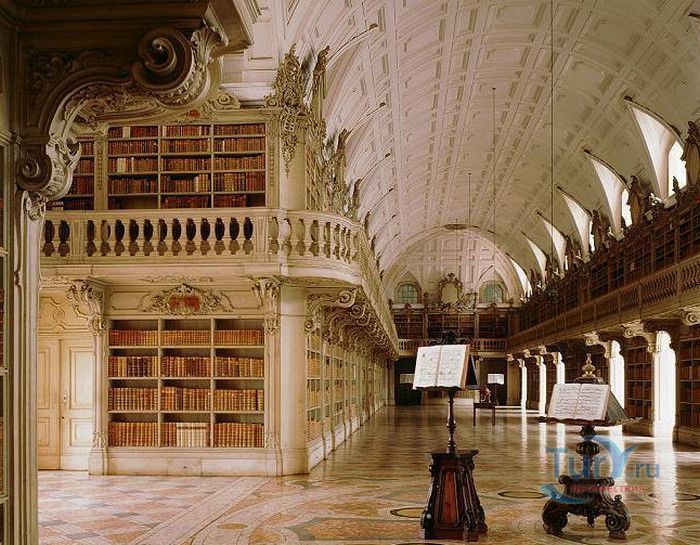 Дворец-монастырь в португальском городе Мафра, расположенном в 40 км от Лиссабона, является воплощением грандиозности и величия. На пике его 13-летнего строительства над созданием дворца работали около 50 000 человек, маленький городок был специально построен для того, чтобы поселить здесь рабочих. Моделью для этого сооружения послужил монастырь Эль Эскориал, созданный Филиппом I в окрестностях Мадрида. Дворец-монастырь в Мафре, служивший также летней резиденцией королей, возможно, не такой впечатляющий и запутанный, но разнообразие его структуры поражает воображение. Его 880 залов, насчитывающих 4500 дверей и окон, служили домом для 300 монахов. Сегодня здание монастыря, вместе с королевским дворцом и жилыми помещениями для 300 монахов, занимает 4 гектара земли. В церкви находятся 11 часовен, искусно украшенных рельефами и мраморными статуями из Италии, а также гордость Мафры - библиотека, насчитывающая 40 000 томов, среди которых встречаются экземпляры с многовековой историей и золотыми страницами. В монастыре можно также посетить Музей Религиозного Искусства с выдающейся коллекцией церковного облачения.