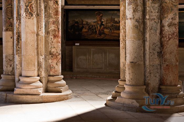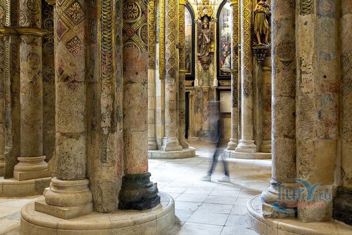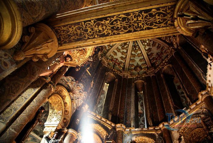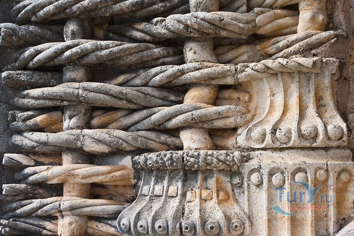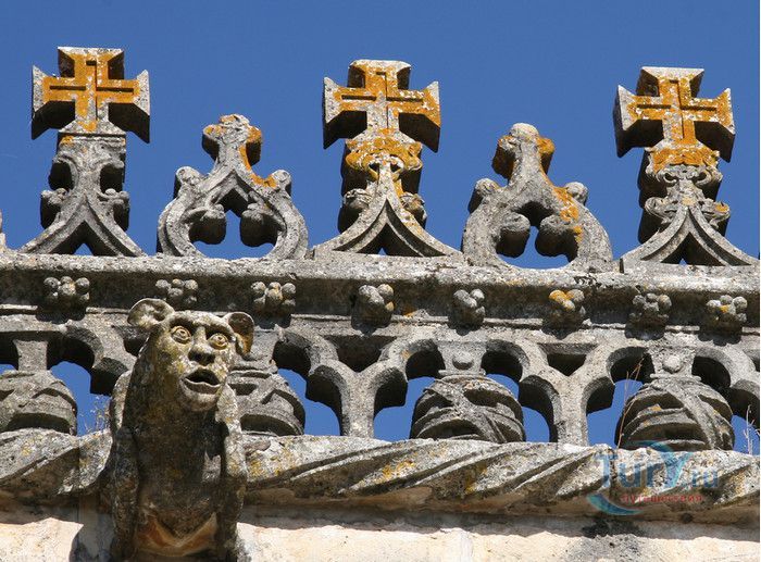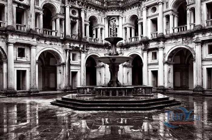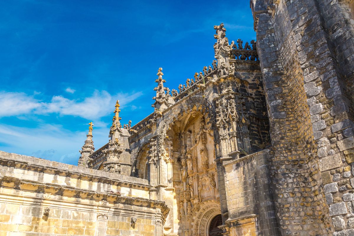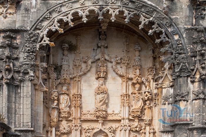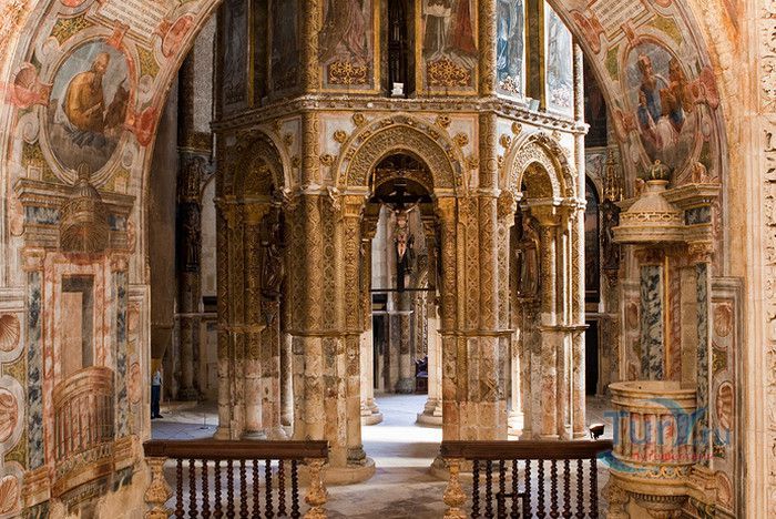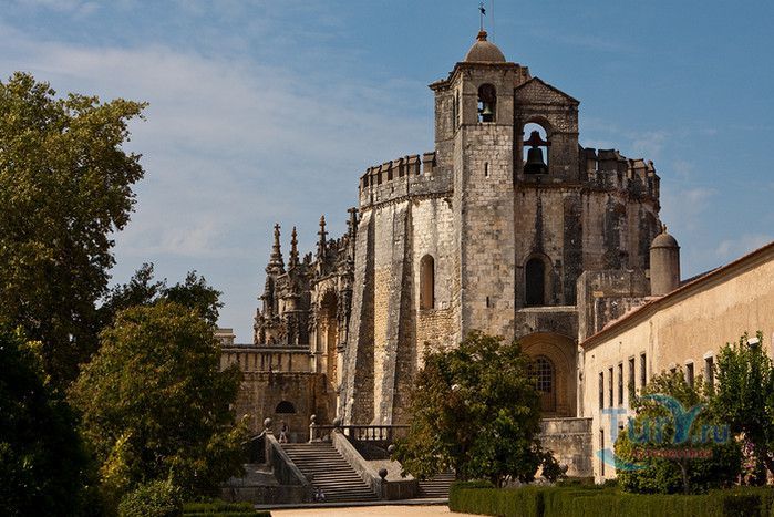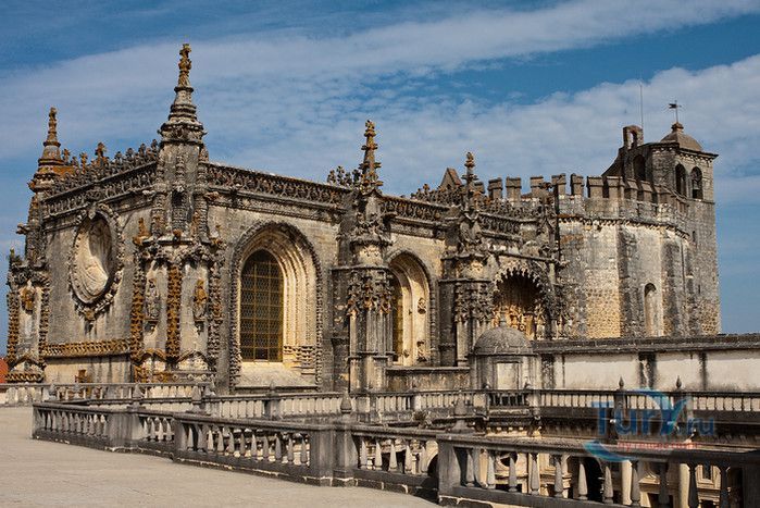 Монастырь, расположенный в португальском городе Томар, изначально был крепостью тамплиеров. С момента своего основания в 1160 году он пережил V веков строительства, включая эпоху Мануэля I (Удачливого). Он также становился жертвой разрушений, особенно в 1810 году, когда Наполеоновские войска превратили монастырь в барак. Остатки сохранившегося на вершине холма монастыря являются самым ярким архитектурным достижением Португалии. На портале Храма Тамплиеров, созданном в стиле мануэлино, изображено все - от листьев до круглолицых херувимов. Внутри находится октагональная церковь с восемью колоннами, созданная, как говорят, по модели Храма Святой Гробницы в Иерусалиме. Церковь, похожая на мечеть, связывает христианскую и мусульманскую культуры. Автор Ховард Ла Фэй назвал её "приглушенным эхом Византии в ярко-красном и золотом цветах". Архитектура монастыря, в котором везде видны знаки отличия Тамплиеров, охватывает многообразие различных стилей. Самым значительным является сооружение, созданное в XII веке и воплощающее идеальную симметрию. В монастыре находятся величайшие португальские шедевры мануэлинских каменных гравюр. Изящным примером тому служит западное окно здания, где собирались члены монашеского ордена. Здесь тонко переплелись узлы и канаты, моряки и мореходные инструменты, шелковистые паруса и коралловые пейзажи. В 1983 году монастырь был объявлен ЮНЕСКО мировым культурным наследием.