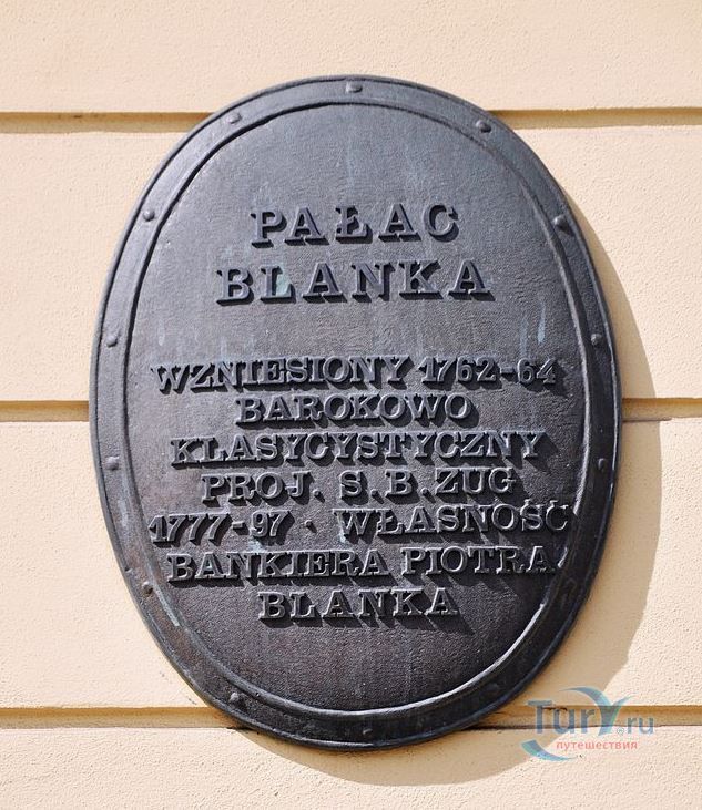 Дворец Бланка расположен в Варшаве, недалеко от Старого города. Дворец был построен в 1762-1764 годах лучшим в то время архитектором столицы Шимоном Богумилом Цугом. В 1777 году владельцем дворца стал известный варшавский банкир Пётр Бланк, который преобразил здание и прилегающую территорию и установил кованные ворота. Этот дворец, выполненный в классическом стиле с богатыми интерьерами, любил посещать сам король Станислав Август Понятовский. По субботам во дворце устраивались обеды, на которых собиралась местная элита.