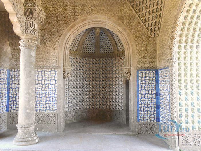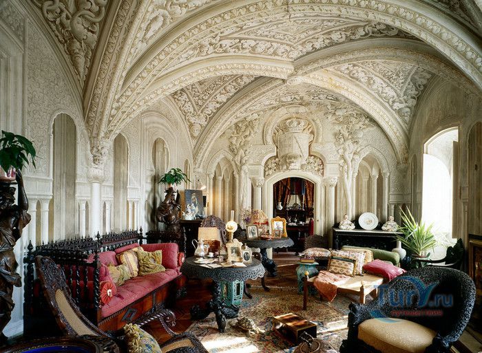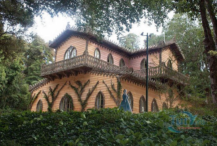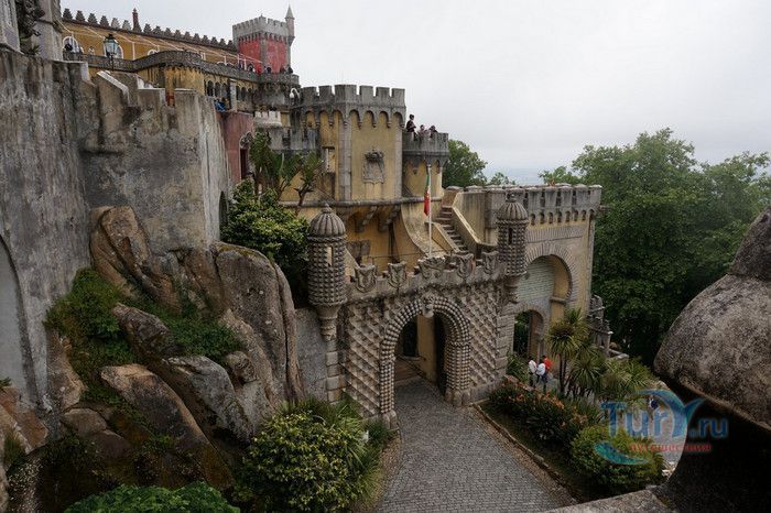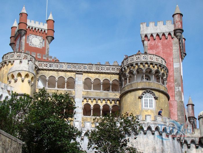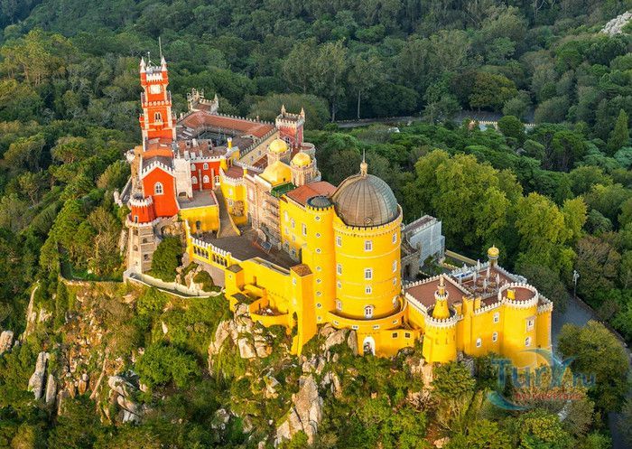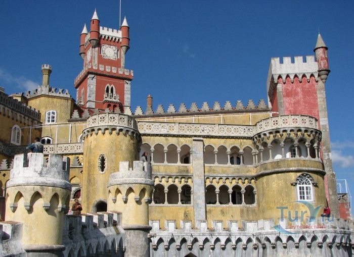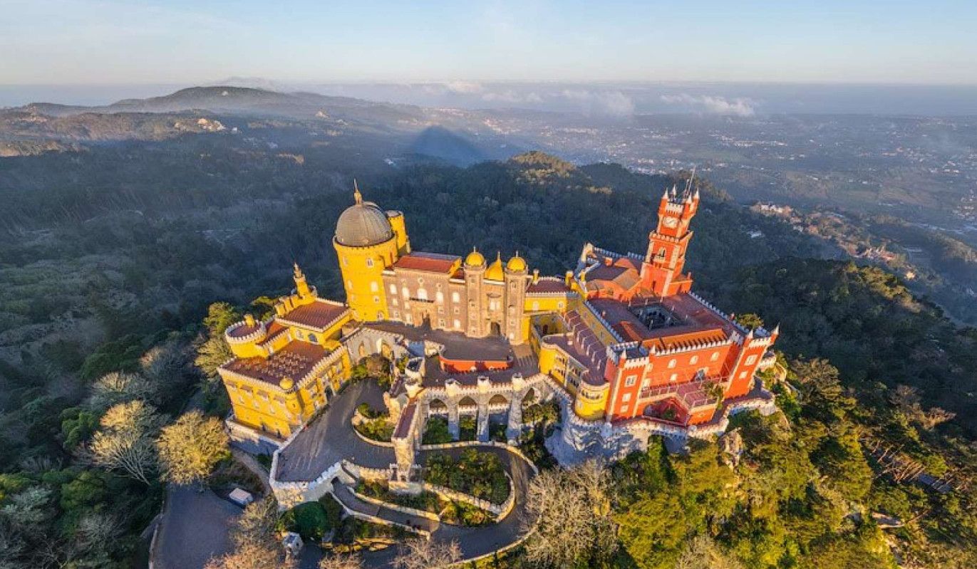 Национальный Дворец Пена расположен в Португалии, в городе Синтра. Дворец был построен на вершине холма, на высоте 528 метров над уровнем моря, в восточной части парка Пена. В 1498 году на скалистом утёсе королём Хуаном II была построена небольшая часовня, на месте которой в 1511 году королём Мануэлем I был возведен монастырь для ордена Святого Иеронима, служивший обителью для 18 монахов. В XVIII веке монастырь был практически разрушен - сначала в него попала молния, а землетрясение 1755 года оставило от монастыря одни руины. Уцелела только небольшая часовня с мраморным алтарём. В 1838 году король Фердинанд II приобрёл старый монастырь и все окрестные земли. В монастыре были начаты восстановительные работы, а в 1843 году - строительство нового крыла дворца. Работами руководил барон Вильгельм Людвиг фон Эшвеге. В планах короля было превратить монастырь в летнюю резиденцию португальской королевской семьи. Дворец строился в архитектурном стиле немецкого романтизма, по личному указанию короля были построены стрельчатые арки, добавлены элементы средневекового и исламского стилей, богато украшенное окно главного фасада здания. Одновременно были начаты работы по созданию дворцового парка в стиле романтических садов того времени, с извилистыми дорожками, павильонами и каменными скамейками. В парке посадили более 500 видов деревьев, в том числе и экзотических. В западной части парка было построено Шале графини Эдла, известное как Дом снисхождения. Шале построено в альпийском стиле и гармонично вписывается в окружающий ландшафт. После смерти Фердинанда II дворец перешёл во владение его супруги Элизы Хенслер, графини Эдла. Позже у графини его купил король Луис I. Короли Португалии, вплоть до революции 1910 года, свергнувшей монархию, подолгу жили во дворце Пена, который стал одной из самых любимых резиденций королевы Амелии - последней королевы Португалии. После революции дворец был национализирован, в нём открыли музей Национальный Дворец Пена. В 1995 году Дворец Пена внесен в список Всемирного наследия ЮНЕСКО, он признан также национальным памятником и одним из семи чудес Португалии. Дворец открыт для посещения в 2013 году, он используется для торжественных мероприятий и приёмов службой президента Португалии.