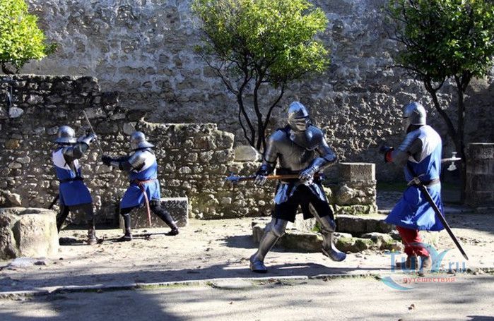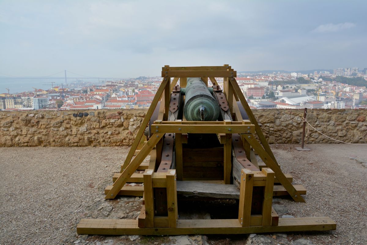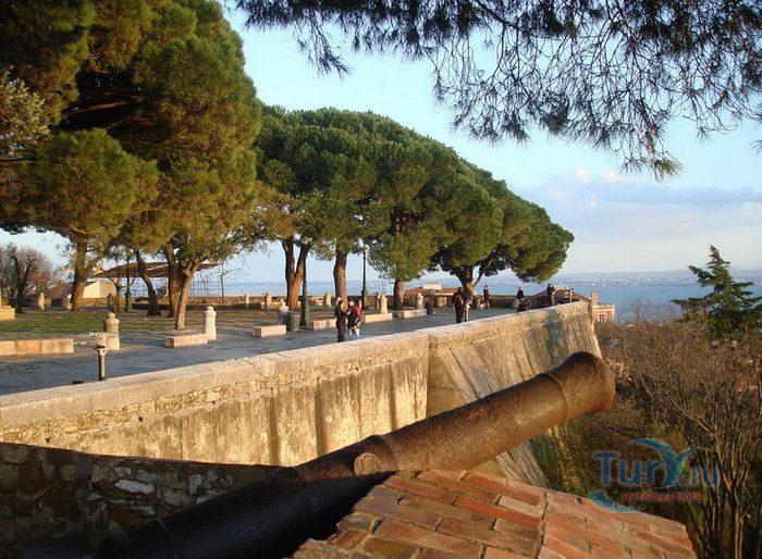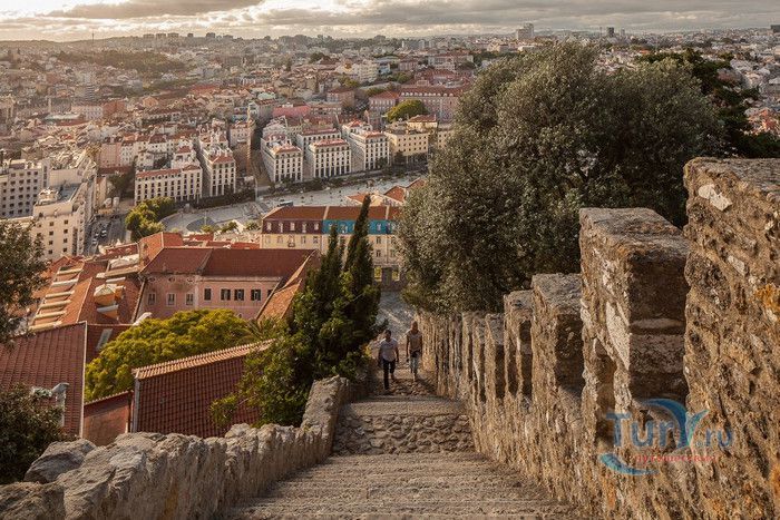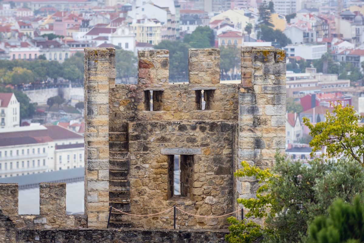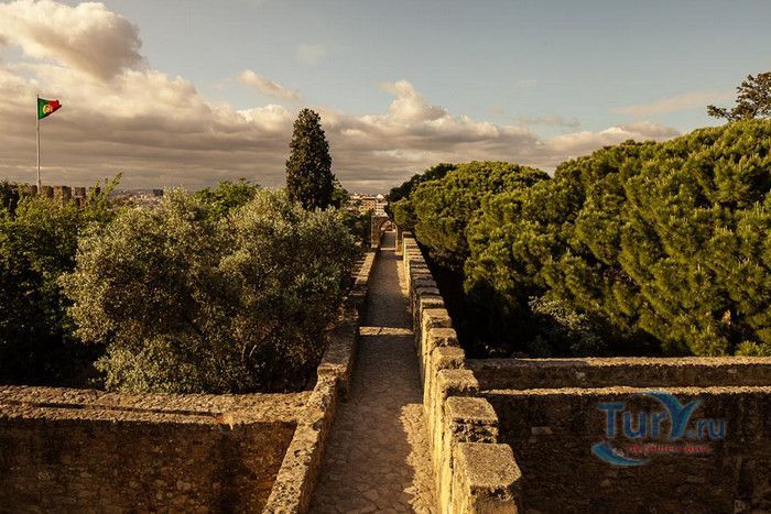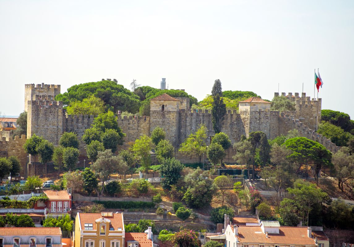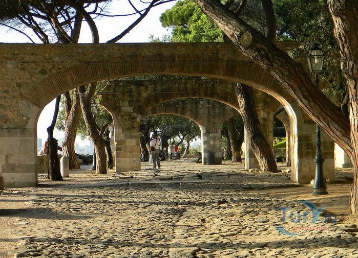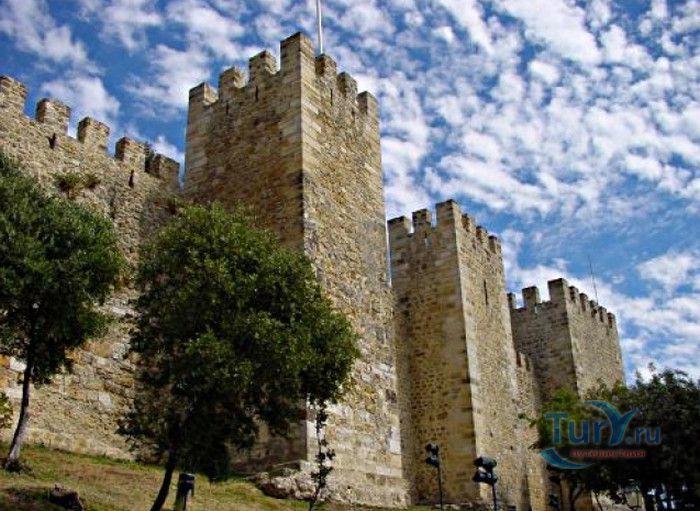 Местные жители называют замок Святого Георгия колыбелью своего города - возможно, именно здесь взяла свое начало столица Португалии. Считается, что люди проживали здесь ещё до римлян - вершина холма использовалась в качестве крепости, защищающей реку Тагус и её окрестности. Начиная с V в. до н.э., это место служило крепостью вестготам, а в начале VIII века крепость была взята сарацинами. Многие из существующих стен были сооружены во время господства мавров. Власть мавров длилась до 1147 года, когда Афонсу Энрикеш изгнал их и основал здесь свое королевство. Королевский дворец здесь стоял ещё до того, как Лиссабон стал столицей новой зарождавшейся нации. Замок Святого Георгия занимает площадь 6000 квадратных метров, имеет несколько башен, наблюдательных пунктов, сухой ров и два парка, разделенных внутренней стеной и соединенной с ней дверью. Сегодня на украшенной зелеными парками территории замка хранится ностальгическая коллекция толстых каменных и средневековых зубчатых стен, а также католическая и феодальная иконография. Внутри дворцовых парков можно прогуляться среди оливковых, сосновых и дубовых деревьев, где важно ходят павлины. Белые лебеди с черными шеями плавно разрезают воды в тишине, нарушаемой лишь резким криками редкого белого павлина.