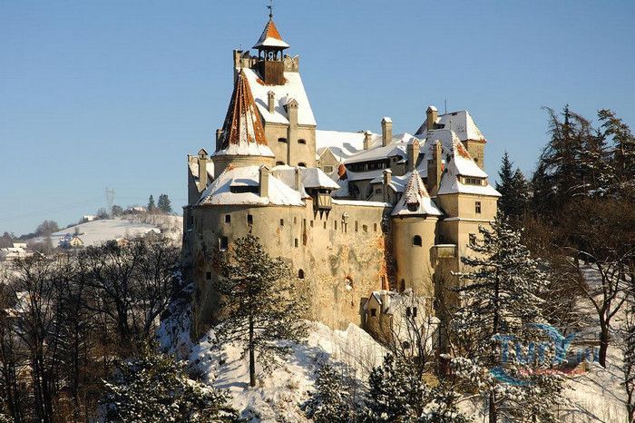 Румыния, Трансильвания, графство Брашов, деревня Бран - здесь жил и творил свои злодеяния самый известный вампир, который когда либо существовал на Земле, граф Влад Дракула. Замок Бран называют замком Дракулы, так как из всех замков Румынии он наиболее соответствует описанию обители Дракулы в книге английского писателя Брэма Стокера. История замка начинается с 1211 года, когда король Андрей II Венгерский подарил земли близ Брашова рыцарям тевтонского ордена, которые и возвели крепость в Бран. 19 ноября 1377 года венгерским королём Людовиком Великим была дарована привилегия народу Брашов на строительство замка на месте тевтонской крепости. Уже в 1388 году строительство замка было завершено. Его ролью в то время была защита восточной границы Трансильвании от нападения османских орд. В 1407 году Сигизмундом Люксембургским замок Бран был подарен князю Мирчи в обмен на присягу о верности. Прототипом могучего и зловещего вампира Дракулы, героя книги Брэма Стокера, стал Влад Цепеш, правитель Валахии, молва о жестокости и беспощадности которого ширилась далеко за границами его владений. Влад Цепеш действительно носил прозвище Дракула, которое он получил от своего отца, бывшего рыцарем ордена Драконов. Однако, Влад Цепеш никогда не владел замком Бран и не жил в нём. В 1459 году его армия прошла через Брашов, сжигая на своём пути деревни и предместья города и убивая сотни саксов из Трансильвании. Очевидно, легенды о жестоком властелине Валахии и послужили поводом назвать Владом Дракулой зловещего вампира. В 1498 году за 1000 флоринов саксы Брашова купили у короля Владислава II Ягелло право пользоваться замком Бран. В 1836 году граница между Трансильванией и Валахией была перенесена от Брашова, и замок Бран потерял своё военное значение. После 1918 года Трансильвания вошла в состав Румынии. 1 декабря 1920 года граждане Брашова подарили замок Бран в знак уважения и любви королеве Румынии Марии. С 1920 до 1932 год в замке проводится масштабная реконструкция под руководством чешского архитектора Карена Лимана, в результате которой замок был преобразован в летнюю королевскую резиденцию. Вокруг замка был разбит английский парк с двумя прудами и чайным домиком. Также были построены гостевой дом, деревянная церковь, дома для прислуги, конюшни и гараж. После смерти Марии в 1938 году, замок унаследовала принцесса Илеана. В 1940 году в замок Бран из дворца Балчик было доставлено сердце королевы Марии. Мраморный саркофаг с королевским сердцем поместили в склепе часовни, высеченной в скале, рядом с замком. В 1948 году, в связи со сменой власти в стране, принцесса Илеана с семьёй покидают Румынию. В 1956 году в замке был открыт музей, в котором были представлены экспозиции, посвящённые жизни в замке королевской семьи, средневековой истории края и этнографии, была собрана богатая коллекция средневековой мебели, оружия и доспехов. С 1 июня 2009 года замок Бран вернулся к законным наследникам, эрцгерцогу Доминику, герцогине Марие Магдалине и герцогине Елизавете, детям принцессы Илеаны. В замке Бран предлагают богатую развлекательную программу для приезжих. Здесь можно отметить Рождество, День Святого Валентина, побывать на Фестивале сыра, который проходит в рамках традиционного Праздника овец. Но наибольший интерес вызывает у туристов Хэллоуин в замке Бран. Гостям полагается ночна