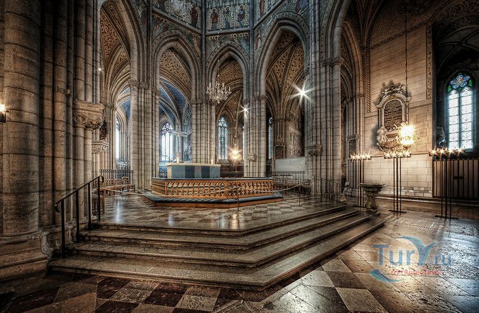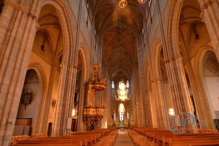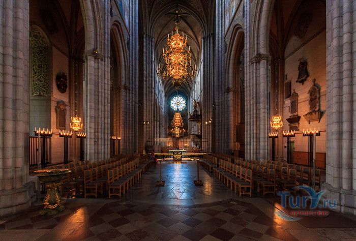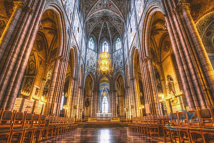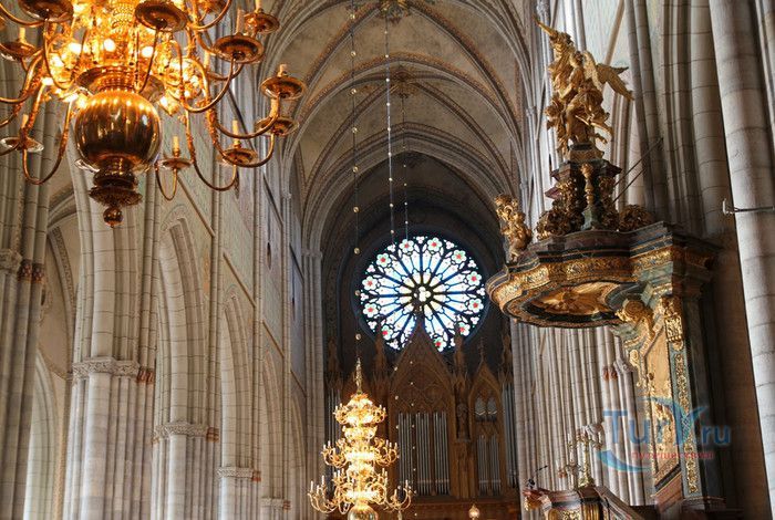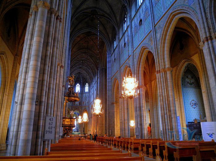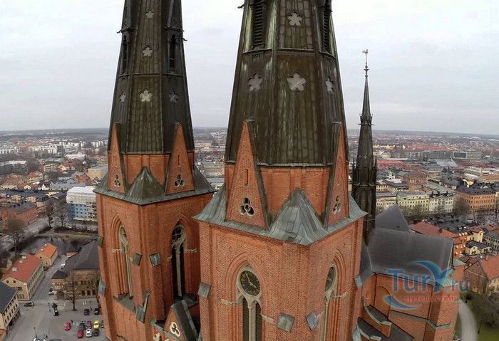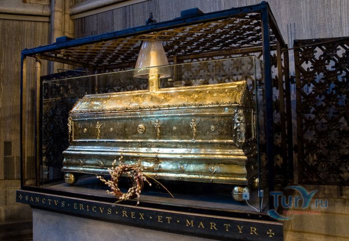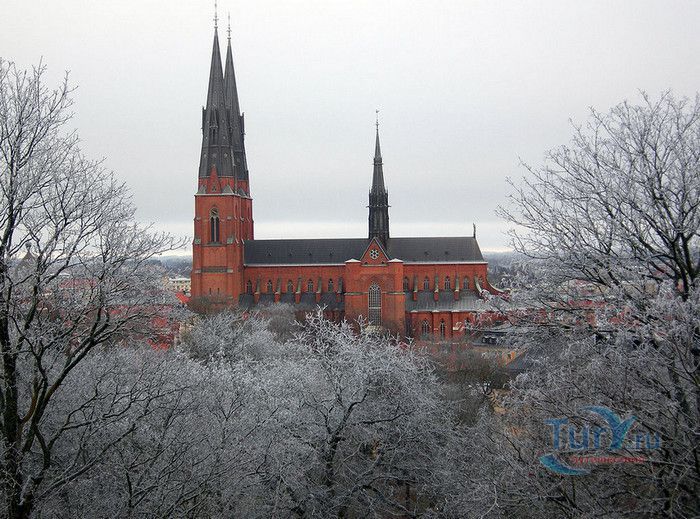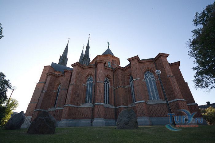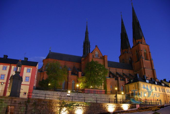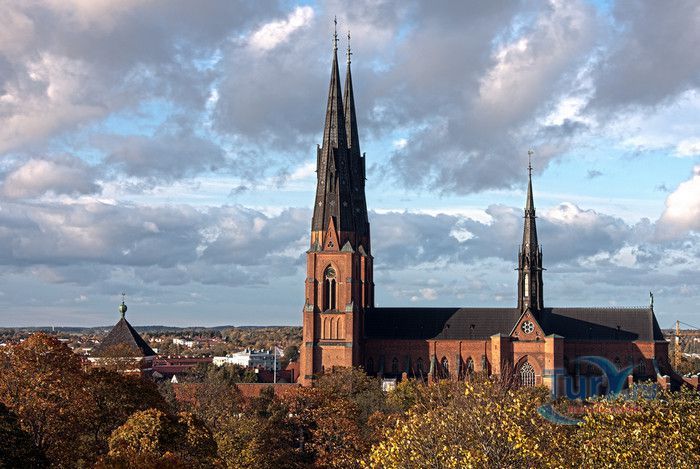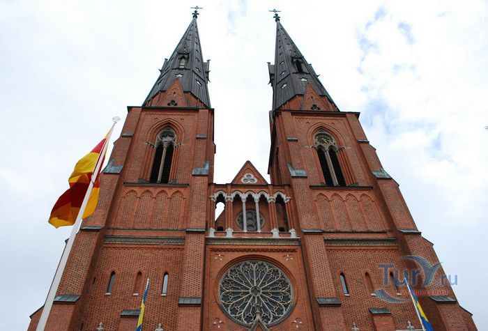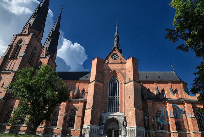 Строительство Уппсальского Кафедрального Собора, считающегося национальной святыней Швеции, было начато в 1270 году под руководством французского архитектора Эстьена де Бонней. Решение о возведении нового храма приняли после пожара в ранее построенном соборе Уппсалы. В 1273 году была построена часовня, в которую перенесли мощи Святого Эрика. Из-за нехватки средств и вспыхнувшей эпидемии чумы строительство растянулось на полтора века, его торжественное открытие состоялось лишь в 1435 году. Сначала была построена восточная часть храма с часовнями, расположенными вокруг пресвитерия. Стены, потолочные своды и колонны были украшены росписями. Западная часть собора бала построена позднее, в XIV - XV веках. Башни возводились уже после открытия храма. Здание построено из кирпича, который изготовляли рядом с местом строительства, а колонны передней части храма выполнены из известняка, привезенного с острова Готланд. Собор несколько раз страдал от пожаров, более всего здание было повреждено при пожаре 1702 года. Во время реставрационных работ, которыми руководил известный шведский архитектор Карл Хорлеман, собор утратил свой первоначальный внешний вид, были несколько уменьшены башни, а купол построен в стиле барокко. В 1885 - 1893 годах архитектором Хельго Зеттерваллем Упсальский Кафедральный Собор был перестроен в нео-готическом стиле. Именно в это время появились сохранившиеся до наших дней настенные росписи, оконные витражи, высокие и острые башенные шпили. Высота и длина здания сравнялись и стали равны 118,7 метрам. Кроме мощей Святого Эрика, в соборе находятся усыпальницы короля Густава I и двух его королев. Рядом с королевскими особами под надгробными плитами покоятся известный ботаник Карл фон Линней и врач Нильс Розен фон Розенштейн. В конце XVIII века захоронения внутри храма были прекращены, исключение было сделано в 1931 году для архиепископа Натана Сёдерблума, лауреата Нобелевской премии мира. Со времён средневековья в Упсальском Кафедральном Соборе посвящались на свое служение все шведские епископы, и вплоть до 1719 года короновались шведские монархи. Ежегодно собор посещают около полумиллиона человек.