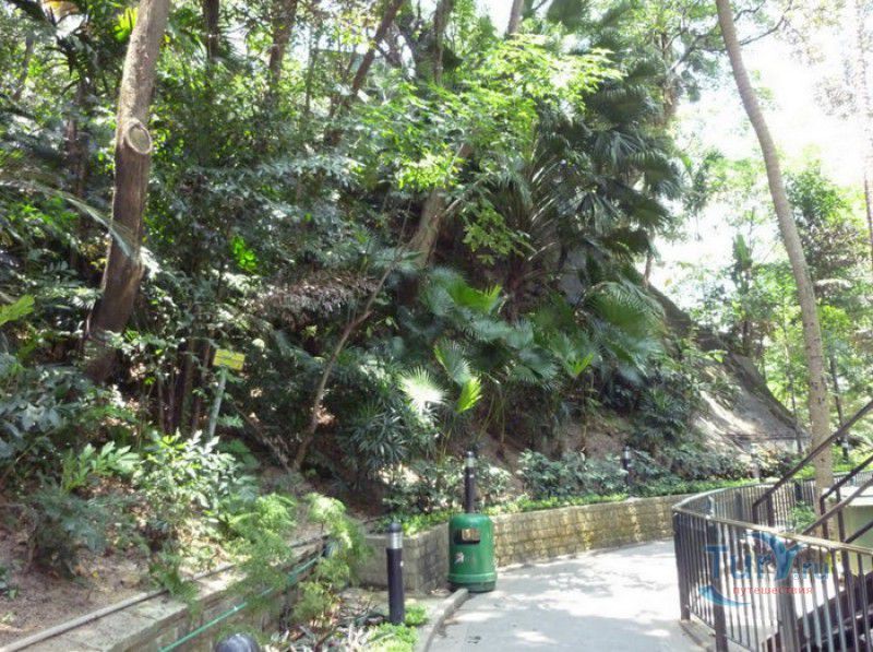 Гонконгский Зоологический и Ботанический Сад расположен в Центральном районе Гонконга, на северном склоне пика Виктория. Сад был основан в 1871 году, некоторое время на его территории располагался Дом правительства, давший название саду - Bing Тау Fa Yuen. Вначале сад функционировал как Ботанический сад, а в 1876 году здесь появились первые животные - рептилии, млекопитающие и птицы. В 1975 году сад был переименован в Гонконгский Зоологический и Ботанический Сад, его площадь - 5,6 гектаров, территория разделена улицей Albany Road на две зоны, попасть из одной части сада в другую можно через подземный пешеходный переход. Восточную часть сада называют Старым садом, в нём расположены теплицы, птичьи вольеры, образовательный и выставочный центр Зелёный дом, зона отдыха Фонтан Терраса Сад и детская площадка. Западная часть отведена под зоологический сад, в котором располагаются 40 вольеров с млекопитающими и пресмыкающимися. В ботаническом саду произрастают более 900 видов растений, большая часть которых в естественных условиях встречаются в субтропиках и тропиках - магнолия, азалия, камелия, королевская пальма, эвкалипт, кипарис, инжир, бирючина китайская, ашока, баугиния, розы, жасмин, цитрусовые деревья и многие другие. В теплицах растут орхидеи, бромелиевые, папоротники (всего около 150 видов). В зоологическом саду обитают 70 млекопитающих, 300 птиц и 20 рептилий, среди которых - калимантанский орангутанг, кошачий лемур, императорский тамарин, сиаманг, ленивец Гоффмана, мартышки, красные фламинго, японский журавль, балийский скворец, желтоголовая индийская черепаха, лучистая черепаха и другие. Гонконгский ботанический сад и зоопарк - популярное место отдыха у местных жителей и туристов, здесь можно отдохнуть от городской суеты, прогуляться по тенистым аллеям, посидеть у фонтанов и полюбоваться на экзотические растения и животных.