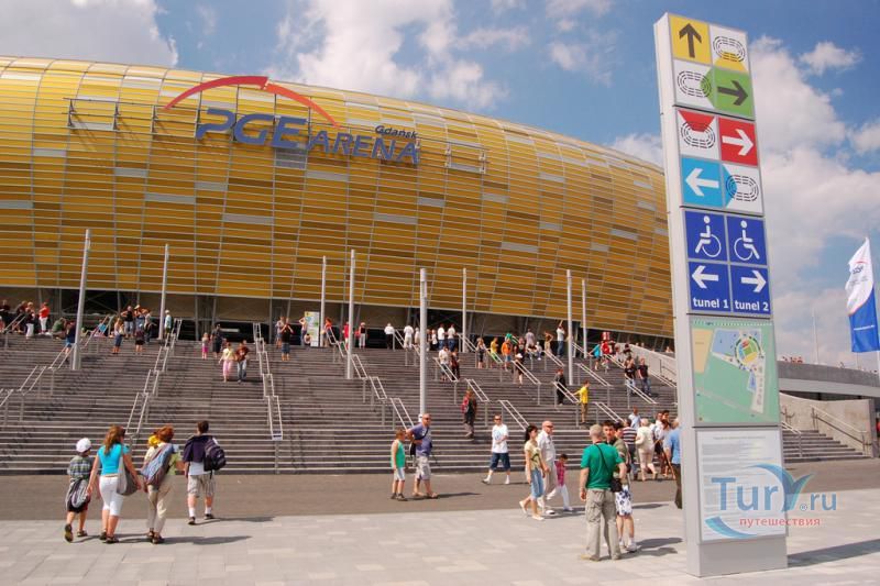 PGE Arena - футбольный стадион в Гданьске, построенный специально к чемпионату Евро-2012. Своим внешним видом арена напоминает янтарь, часто встречающийся на Балтийском побережье. Строительство стадиона началось в 2008 году и завершилось тремя годами позже. 6 августа 2011-го он был представлен публике. Вместимость PGE Arena составляет 44000 зрителей. Предполагается, что здесь пройдут три матча группы C и четвертьфинал чемпионата Европы. После окончания Евро на стадионе будет выступать местный футбольный клуб "Легия".