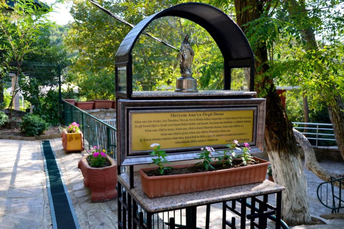 Почти перед самим домиком под деревом стоит памятник Деве Марии (на левой руке отсутствует большой палец). В самом доме фото и видео съемка запрещена. Внутри дома пол сплошь устлан коврами, присутствуют живые цветы, по стенам развешены выдержки из Корана, в которых упоминается Дева Мария. На стене у выхода - проступивший лик Богородицы. Выйдя из дома-часовни можно поставить свечи за упокой и за здравие. А если спуститься вниз по лестнице, то увидите церковную лавку, а ещё ниже - 4 (!) источника со Святой водой. Воде, в каждом из источников, приписывается особое действие: 1-й дарует здоровье, 2-й - любовь, 3 - деньги, 4 - благополучие. Далее на каменной стене, откуда бьют источники, что-то необычное, сделанное из обрывков тканей, листков бумаги, салфеток привязанных друг к другу. Это стена желаний. Верующие со всего мира, побывавшие здесь, пишут свои самые заветные желания и привязывают на эту стену. Один раз в неделю желания сжигаются, а пепел развеивают по ветру.