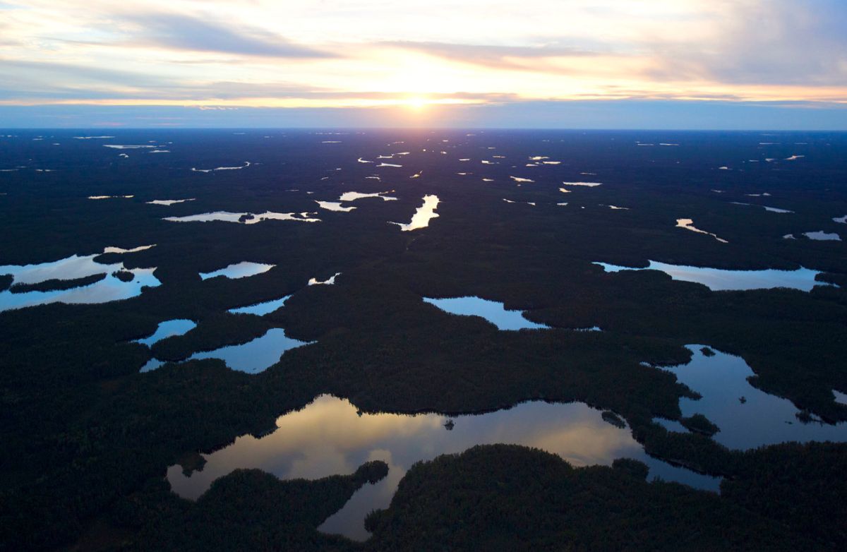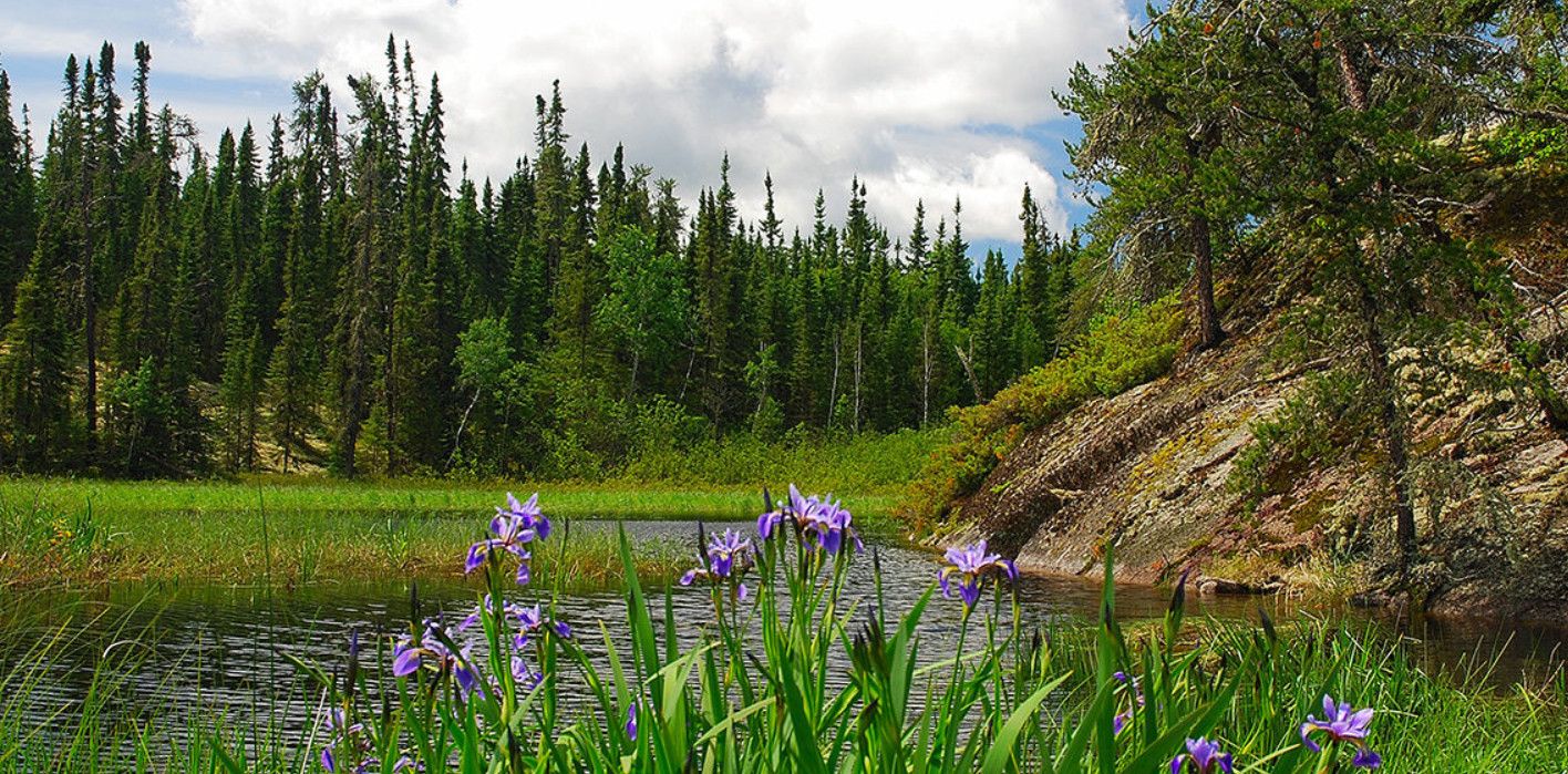 Бореальные леса, растущие здесь на протяжении тысячелетий, состоят в основном из деревьев чёрной ели, сосны и тополя. Здесь обитают около 40 видов млекопитающих, в том числе Бореальный лесной карибу, стада которого в Пимачиовин Аки являются самыми многочисленными на планете, 220 видов птиц, множество видов рыб (в том числе осётр, судак и озёрная форель) и насекомых.