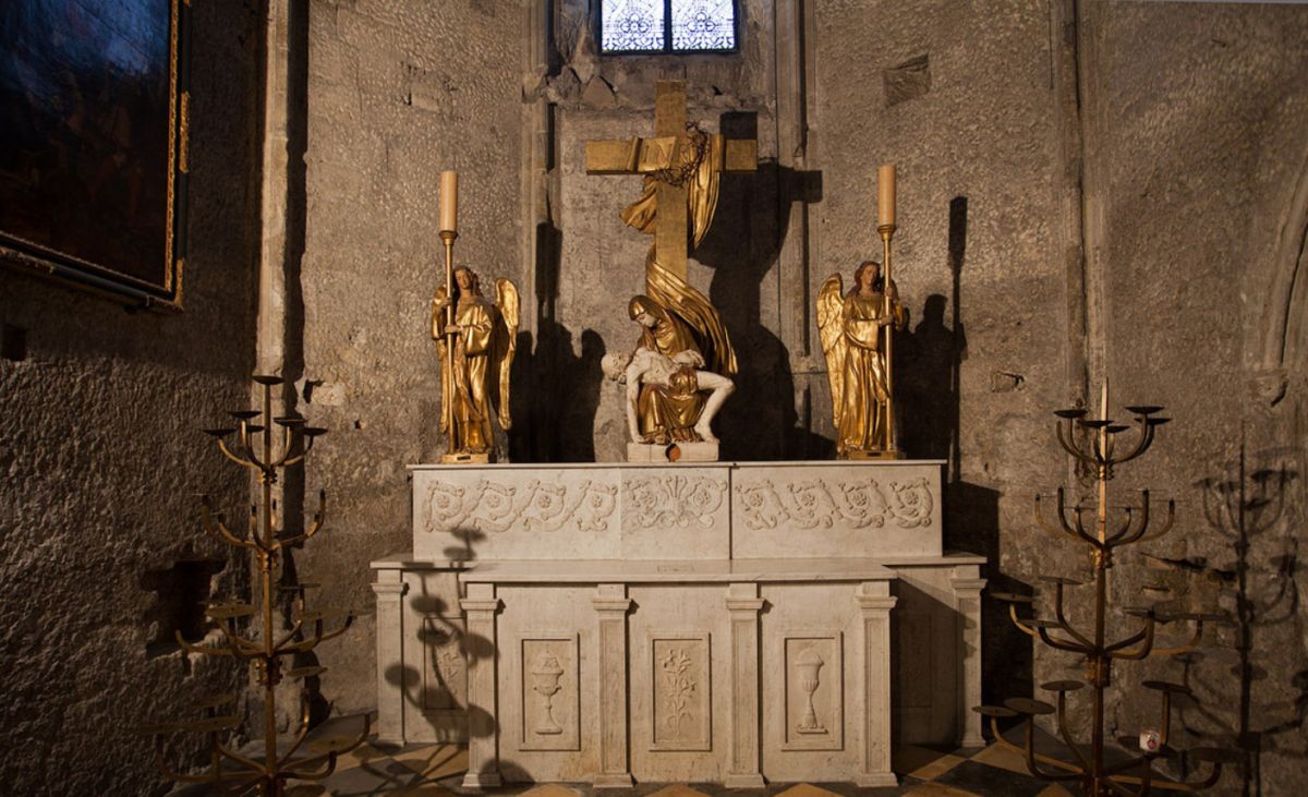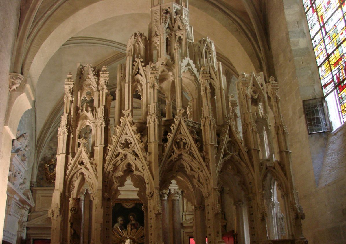 Понятно, что Авиньонский собор должен был соответствовать своему статусу. Поэтому в XIV веке его здание было значительно расширено, в частности, добавлены две готические часовни с гробницами пап Иоанна XXII и Бенедикта XII. В это же время интерьер собора был украшен фресками, для чего в Авиньон был приглашён выдающийся итальянский живописец того времени Симоне Мартини. Кроме того, в соборе сохранились фрески и XIII века, выполненные в так называемом "макабрическом" (страшном, ужасном) стиле на сюжет популярного в средние века сказания "Трое мёртвых и трое живых". К слову, эти фрески считаются одними из самых старых макабрических фресок в Европе.