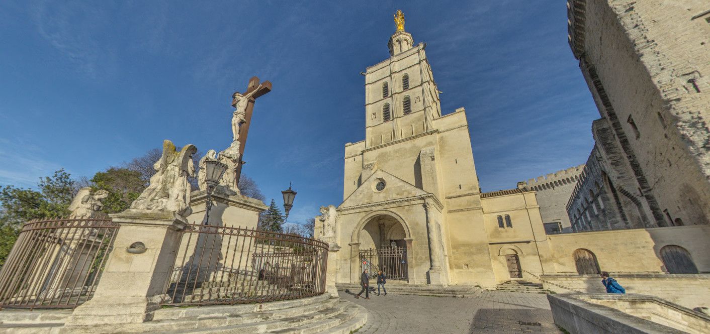 Авиньонский собор расположен к к северу от Папского дворца, но был построен гораздо раньше него - в 1150 году. Собор был возведен в прованском романском стиле, но в дальнейшем несколько раз перестраивался, благодаря чему к его архитектурному облику добавились черты готического стиля, а некоторые детали интерьера были выполнены в стиле барокко.