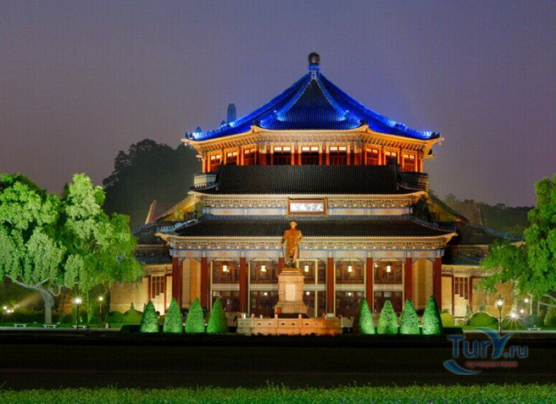 Мемориальный Зал Сунь Ятсена расположен в городе Гуанчжоу, у подножия южного склона горы Юэсю. Место для строительства Мемориала было выбрано не случайно - ранее на этом месте располагалась официальная резиденция первого президента Китайской Республики, "отца нации" Сунь Ятсена, в которой в 1912 году состоялась церемония принесения им президентской присяги. Средства на строительство Мемориала одному из самых почитаемых в Китае политических деятелей собирали жители Гуанчжоу и представители китайской диаспоры со всего мира. Здание в традиционном китайском стиле было построено в 1929-1931 годах по проекту архитектора Лу Яньчжи, оно имеет восьмиугольную форму и занимает площадь 6600 квадратных метров. Применение самых современных для того времени строительных технологий позволило обойтись без колонн и свай, поддерживающих потолок. Огромный купол центрального зала опирается лишь на несущие боковые стены, оставляя пространство под ним полностью свободным, не разделённым перегородками и опорами. В 1956 году перед Мемориалом была установлена 5-метровая бронзовая статуя Сунь Ятсена, а в 1998 году проведена полная реконструкция комплекса. Мемориал Сунь Ятсена, зал которого может вместить до двух тысяч человек, часто используется для проведения конференций и заседаний, здесь также проходят концерты и спектакли. В зале находится галерея с фотографиями и письмами Сунь Ятсена. На территории Мемориального комплекса разбит большой парк, в котором растут старейшая в Гуанчжоу сейба (хлопковое дерево), которую считают ровесницей города, а также два самых больших в Гуанчжоу дерева белой магнолии. Посетители Мемориала Сунь Ятсена могут прогуляться по аллеям парка, насладиться тишиной и покоем, отдохнуть от городской суеты.