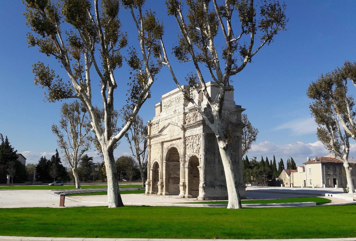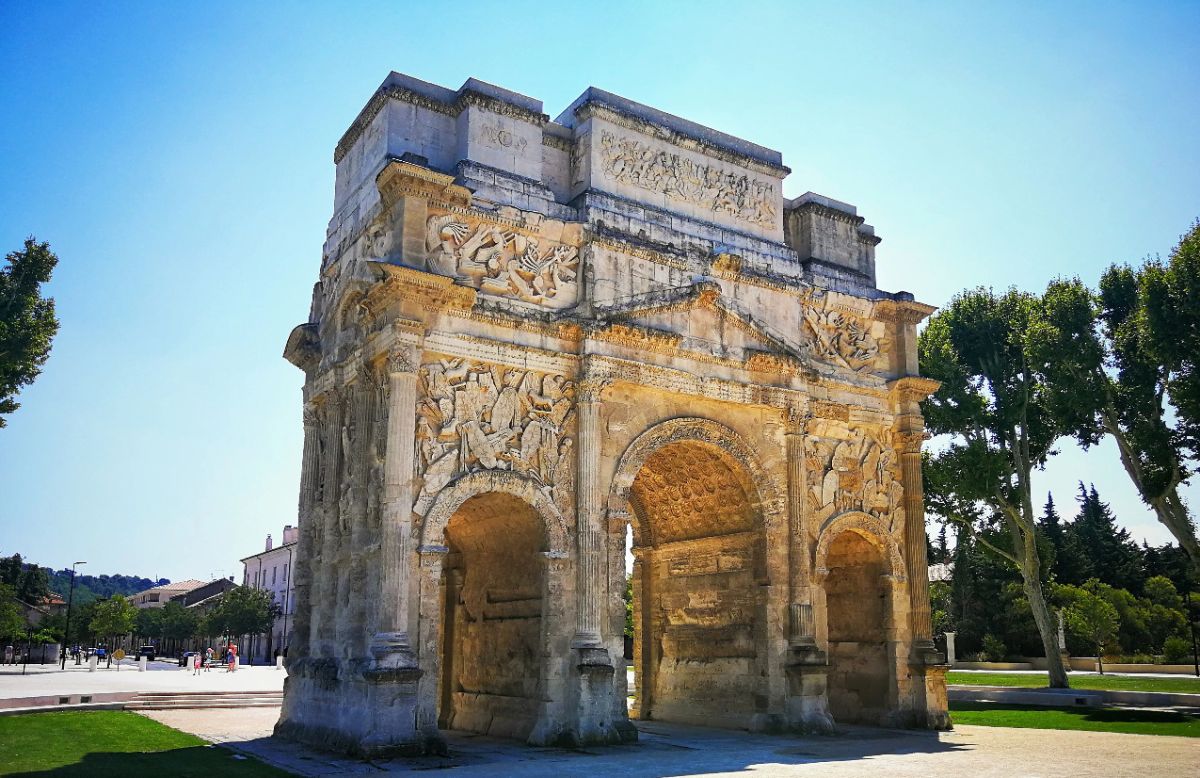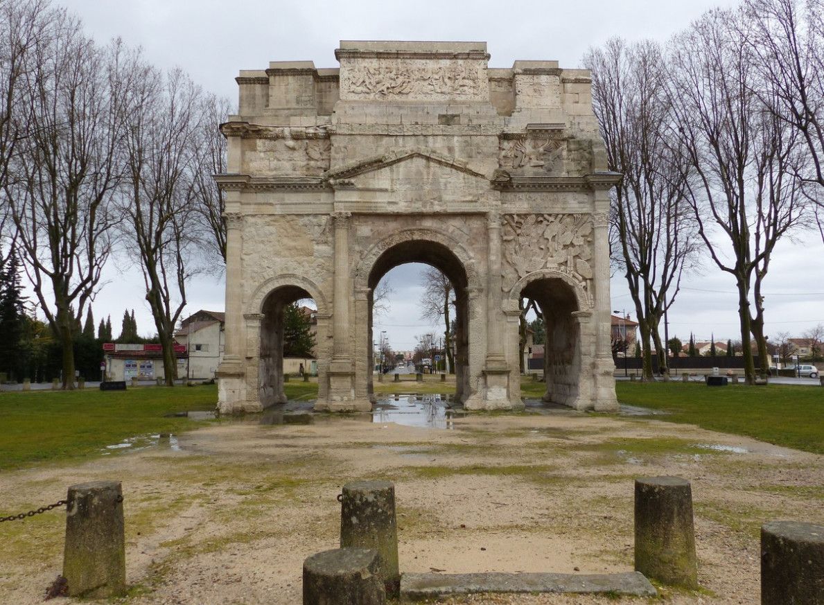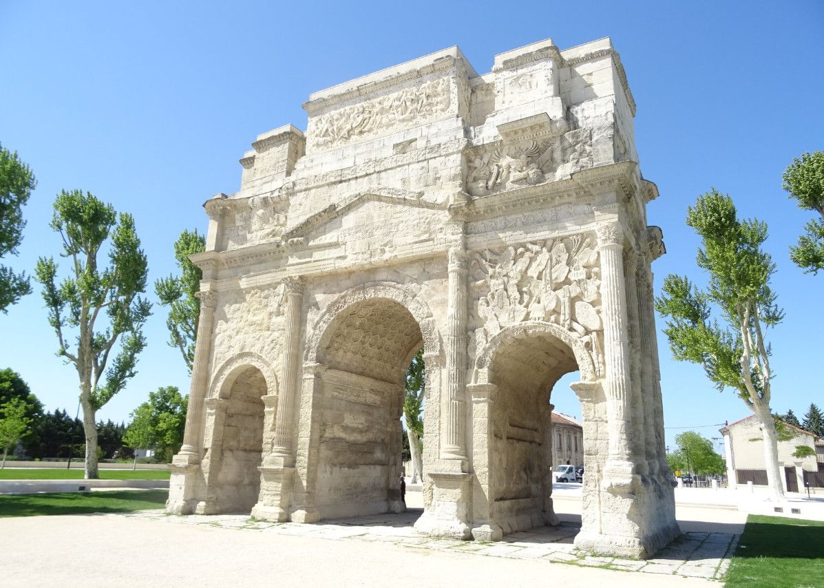 Триумфальная арка Оранжа была возведена в начале I века нашей эры в честь ветеранов Второго Галльского легиона, основавших город Араузион. По сути арка являлась парадными воротами Араузиона, построенными на Агриппиевой дороге, по которой из города Лугдунум (Лион) через Араузион (Оранж) можно было попасть в Рим и обратно. Сейчас этот путь повторяет Национальная дорога 7 (Route nationale 7).