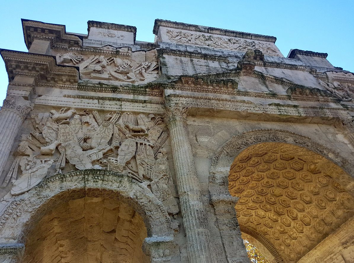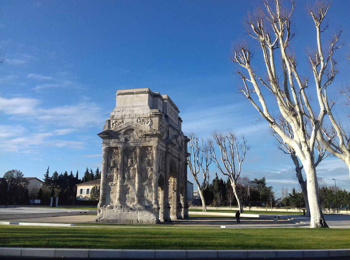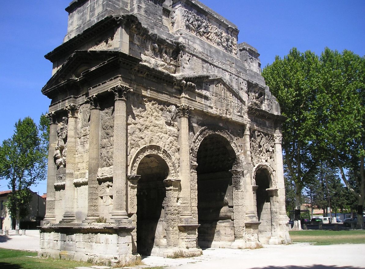 Триумфальная арка Оранжа была возведена в начале I века нашей эры в честь ветеранов Второго Галльского легиона, основавших город Араузион. По сути арка являлась парадными воротами Араузиона, построенными на Агриппиевой дороге, по которой из города Лугдунум (Лион) через Араузион (Оранж) можно было попасть в Рим и обратно. Сейчас этот путь повторяет Национальная дорога 7 (Route nationale 7).