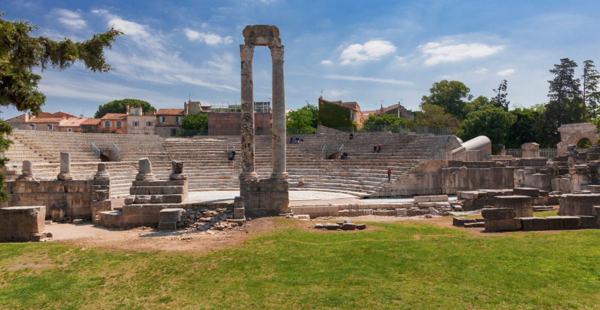Античный театр в Арле стал одним из первых театров, построенных в камне, на территории всей Римской империи. Театр состоял из трёх зон - кавеи (зоны для зрителей), сцены и внешней стены, которая не только прикрывала собой сцену, но и служила украшением театра.