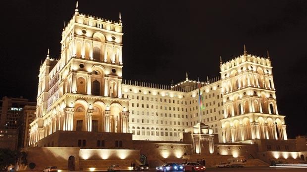 Фасад здания украшен колоннадами и архитектурными деталями, которые подчеркивают его статус и значимость как центра государственной власти. В ночное время Дом Правительства Азербайджана эффектно подсвечивается, что делает его одной из ярких достопримечательностей Баку.