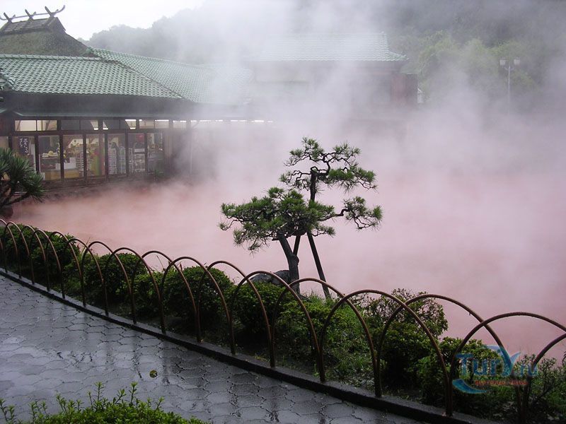 В районе города Беппу расположен один из самых крупных районов выхода подземных термальных вод на планете. По подсчётам, его горячие источники и гейзеры выбрасыавают более 56600 куб. м воды в день, что превратило город в крупный туристический центр, где посетители принимают горячие песчанные ванны или лечебные, насыщенные минеральными солями воды. Сейчас на базе более чем 3,5 тысяч местных горячих источников открыто множество превосходных бальнеологических курортов, а в свободное время можно посетить уникальные "кипящие озера" Чиноике Дзигоку и Уми Дзигоку, а также гейзер Татсумаки Дзигоку или местный зоопарк, понаблюдать за поведением "снежных макак", также обожающих принимать горячие ванны. В суровые зимние холода в Южной Японии можно наблюдать весьма любопытное зрелище. Во время снегопадов Маленькие обезьянки-макаки ищут тепла в согретой вулканической деятельностью воде, погрузившись в неё по шею, в то время как снег покрывает их головы. Однако, вылезая из воды, обезьянки быстро теряют тепло в ледяном воздухе и, в результате, с мокрой шерстью мёрзнут ещё больше, чем если бы не поддались соблазну принять горячую ванну. Но обезьянки достаточно изобретательны и, похоже выработали "систему дежурств", отправляя одного-двух посыльных за едой, между тем как остальные ждут в тепле.