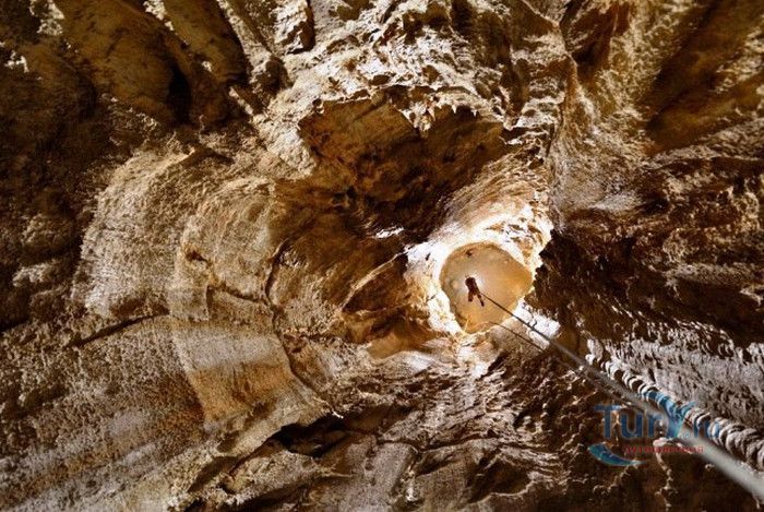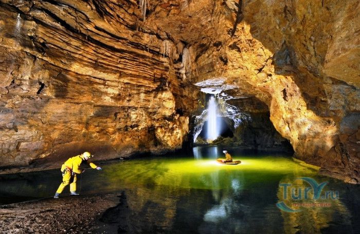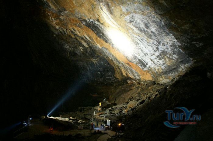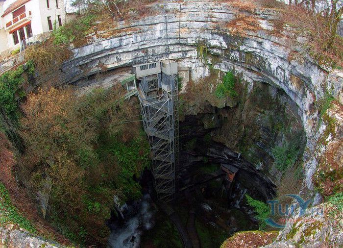 Карстовая пещера (её также называют пропастью) Пьер-Сен-Мартен расположена на границе Франции и Испании, в самом сердце Пиренейских гор, в горном массиве Пьер-Сен-Мартен, рядом с городом Сент-Анграс. На сегодняшний день, изведанная глубина пещеры составляет 1342 метров, протяжённость пройденных галерей - 380 км. В пещере обнаружены 2000 карстовых колодцев, 50 из которых имеют глубину свыше 300 метров, и 13 подземных рек. Пещера Пьер-Сен-Мартен начинается с 270-метровой пропасти с отвесными стенами и мощным подземным водопадом. Дно пропасти - громадный зал, который переходит в круто наклоненную галерею, заваленную глыбами, сквозь завал прокладывает себе путь бурлящий подземный поток. Один зал переходит в другой, а пещера опускается всё глубже, пока не становится непроходимой. Исследования массива были начаты в XIX веке спелеологами Эженом Фурнье и Эдуардом Альфредом Мартелем, однако широкую известность Пьер-Сен-Мартен приобрёл после того, как в 1950 году Жорж Лепине открыл пропасть, позже названную его именем. В 1951 году Жорж Лепине, Марсель Лубан, Гарун Тазиев и Макс Козинс спустились на глубину 320 метров, а во время экспедиции 1952 года сорвался в пропасть с 30-метровой высоты и погиб Марсель Лубан. В 1953 году спелеологами был открыт огромный зал Верна, его диаметр равен 245 метров - на дне Верны могли бы поместиться шесть Соборов Парижской Богоматери, площадь - 5 гектаров, высота - 194 метра. Исследователями пещеры была достигнута глубина 734 метра. В 1954 году был открыт Тоннель Ветра, в котором скорость воздушных масс достигает 40 километров в час. В 1966 году была учреждена Ассоциация Международных Спелеологических исследований Пьер-Сен-Мартен. Учёные занимаются координацией исследований и изучением физико-химических, метеорологических явлений и уникальной фауны карстовой пещеры. С 2008 года в пещере заработала подземная гидроэлектростанция, строительство которой было начато ещё в 1956 году, но было приостановлено более чем на 50 лет. Пещера Пьер-Сен-Мартен не является открытой для посещений без разрешения ARSIP, в 2010 году был открыт для туристов зал Верна, но только по предварительному согласованию визита.
