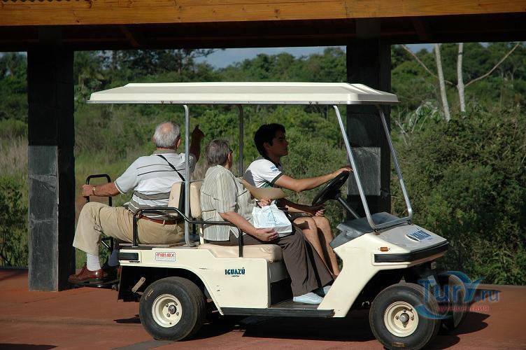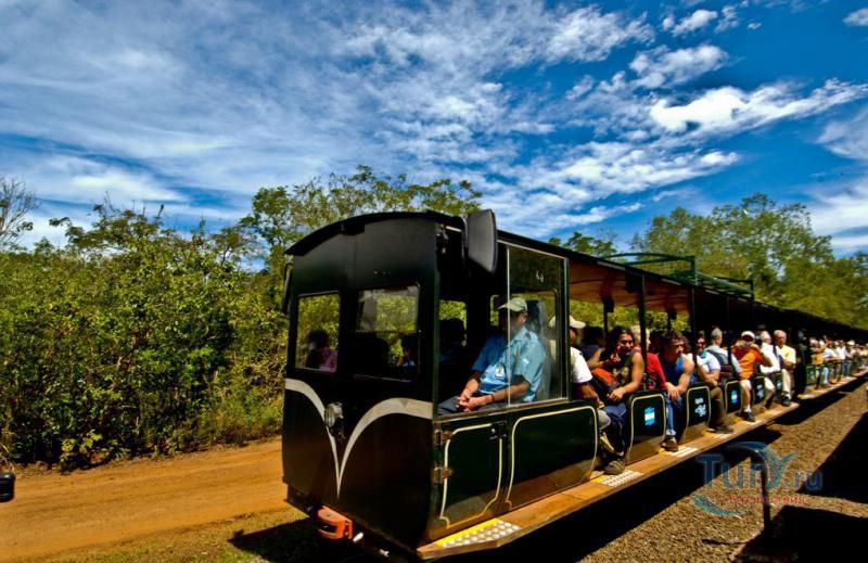 3. Далее можно на железнодорожном поезде за 15 минут добраться до водопадов. Экологический поезд Rainforest был спроектирован и построен английской компанией Alan Keef Limited специально для передвижения туристов в районе Национального парка Игуасу. Вагоны поезда открытые, так что его 250 пассажиров находятся в прямом контакте с окружающей природой. Они могут воспринимать и ощущать звуки, запахи, влагу джунглей. За 15 минут поезд преодолевает расстояние в 3700 метров. (Средняя скорость 18 километров в час).