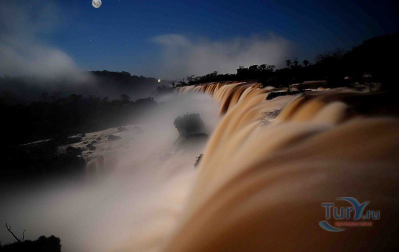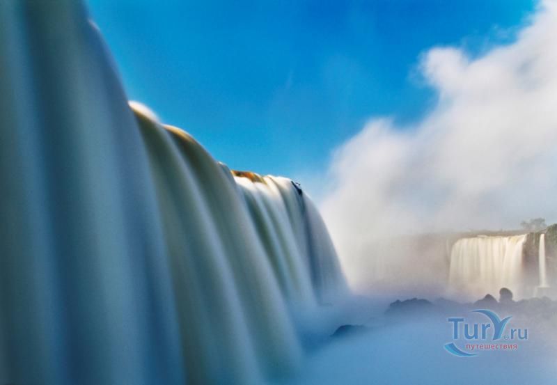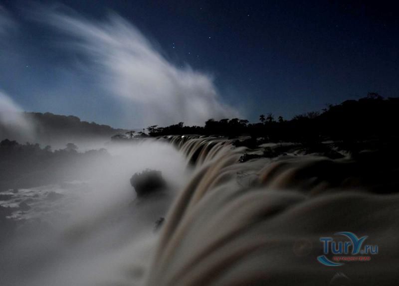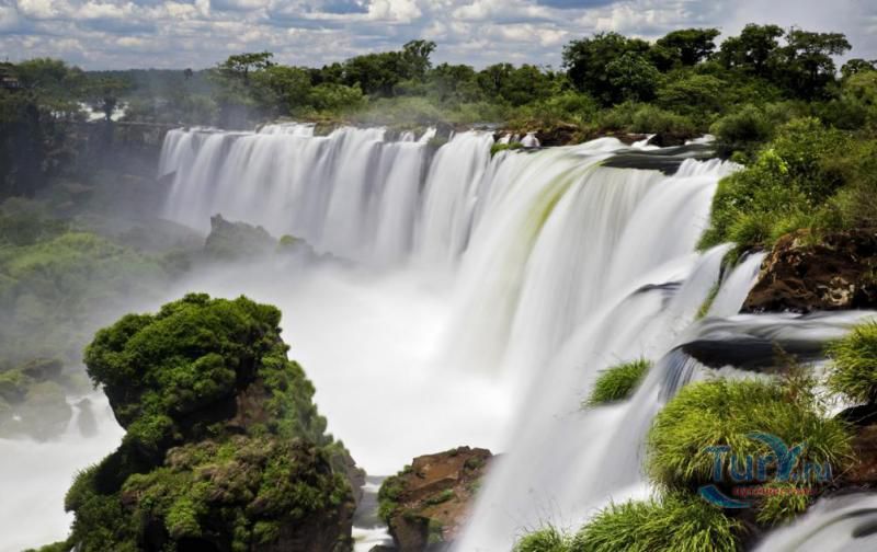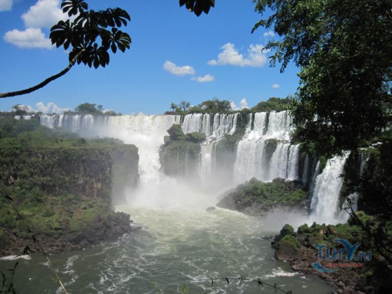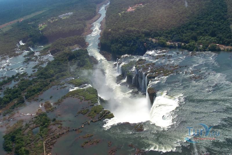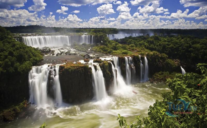 Водопады Игуасу расположены на территории двух одноименных национальных парков «Игуасу» (Аргентинский и Бразильский), занимающих территорию в 67 720 гектаров. Это система, состоящая из 275 водопадов, расположенных в Средне-Атлантических лесах, находится в 17 километрах от устья реки Рио-Игуасу, на реке Парана, в точке, в которой пересекаются границы Аргентины, Бразилии и Парагвая. Название Игуасу, на языке Гуарани расшифровывается как «Большая вода» («I» - вода и «Guasu» - большой). Водопады образовались после сильного вулканического извержения, в результате которого в земле образовалась большая расщелина. Существуют несколько индейских легенд, по которым боги разрезали реку, чтобы помешать влюбленной паре уплыть на каноэ от их гнева. То ли сам верховный бог захотел жениться на индейской девушке, и она от него сбежала, то ли влюбленная пара сбежала из племени без родительского благословления, но в обоих случаях боги страшно покарали влюбленных. Как бы там ни было, базальтовые отложения, по которым стекают водопады, возникли примерно 130 —140 миллионов лет назад. В то время водопады располагались практически на месте впадения реки Игуасу в Парану. Однако каждый год расстояние между водопадом и рекой Парана увеличивалось примерно на 1—2 метра, в результате чего получилось, что водопад «отполз» от своего места рождения на 28 километров. Археологические объекты, найденные на территории парка, говорят о том, что первыми обитателями этих краев считаются индейские племена «кайнганг» и «гуарани». Европейцы открыли водопады в 1541 году, во время экспедиции в поисках страны Эльдорадо. Первооткрывателем водопадов принято считать испанского конкистадора, исследователя Нового Света Кабеса де Вака. Именно он в 1541 году захватил страну индейцев Гуарани, назвал её провинцией Веры и забрал в власть свои руки. Однако водопады не произвели сильного впечатления на колонизатора. Он назвал их испанским словом «Сonsiderable», то есть «значительный». Первым владельцем этих земель был землевладелец, бизнесмен, политик, меценат и филантроп Аргентины José Gregorio de Lezama. Однако он не видел в «куске джунглей, граничащих с несколькими водопадами», особой ценности. Поэтому земля была продана с публичного аукциона за бесценок. Следующим владельцем данных земель был Domingo Ayarragaray. Именно он начал развивать инфраструктуру парка. Был построен первый отель, началось строительство дорог, ведущих к водопадам. Вскоре парк был приобретен Аргентинским правительством, под управлением президента Иполито Иригойена. 9 октября 1934 года земли «Игуасу» были объявлены Национальным парком. Своей природой и климатом парк «Игуасу» напоминает тропики амазонских лесов, наиболее богатых биологическим разнообразием. Климат тропический сухой. Средняя температура воздуха колеблется от 14°C зимой до 24ºC летом. Осадков выпадает 1800 миллиметров в год, сезон дождей - летом. Леса здесь многоуровневые, самый высокий уровень крон деревьев называется «канопи», ниже — ещё несколько «ступеней» более низких деревьев. На самом нижнем уровне кустарников и трав произрастают разные виды «йерба матэ», из которых заваривают популярный в Аргентине чай. Орхидеи растут прямо на стволах деревьев. Пышные джунгли парка изобилуют лианами, эпифитами и папоротниками. Кроме того, прибрежные леса располагаются на задворка