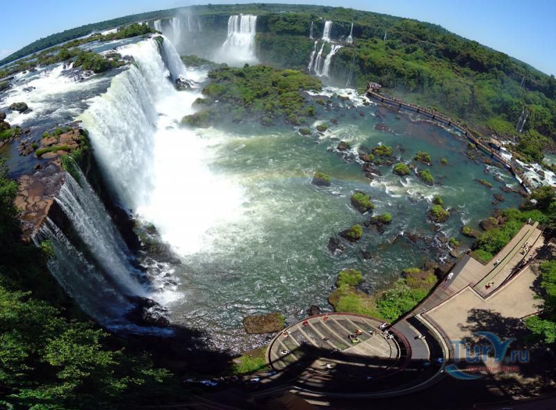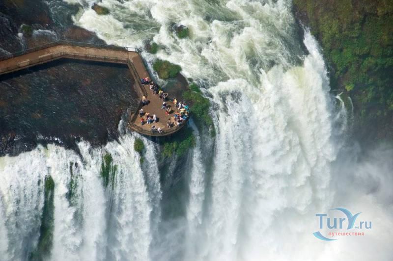 4. «Глотка дьявола» - самая интересная часть Игуасу. Это U-образное углубление шириной 150 и длиной 700 метров, именно оно является главным местом посещений. Среди туристов популярно посещение Глотки Дьявола со стороны обеих стран, хотя даже с одной точки открывается вид на водопад в 260º. Особенно яркие впечатления подарит полет на вертолете над водопадом, откуда можно полюбоваться красивейшей природной панорамой нашей планеты. Не менее интересно взглянуть на один из красивейших водопадов Земли снизу, купив экскурсию на лодке.