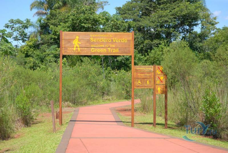 2. Пешая экскурсия «Зеленая тропа» (655 метров), начинается от информационного центра и заканчивается на железнодорожной станции поездов, следующих к водопадам. За полчаса приятной прогулки по субтропическим джунглям посетители могут оценить широкое разнообразие видов растений, понаблюдать за птицами и животными.