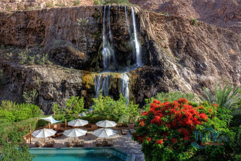 Горячие источники с природной минеральной термальной водой расположены в 25 км от города Мадаба, на дне большого каньона Сат среди базальтовых скал, куда можно спуститься по серпантинной дороге. Источники находятся на 264 метра ниже уровня мирового океана, а это способствует особому микроклимату, температура здесь гораздо выше. Еще царь Иудеи Ирод Великий любил пользоваться целебной минеральной водой горячих источников, позже в византийские времена минеральная вода активно использовалась в лечебных целях. Затем несколько столетий источниками не пользовались, позже они были вновь открыты для нуждающихся в исцелении людей. Источники выглядят как живописные водопады тридцатиметровой высоты. Сверху со скалы открывается необыкновенный вид на Мертвое море и каньон Сат. Вымытая струями пещера с природными наскальными рисунками наполняется горячими водами, иногда местами просто кипятком, бьющим из-под скал, и образует природную естественную парилку (купальню-сауну). Вода в горячих источниках обладает противоаллергическими свойствами, тормозит процесс старения, улучшает межклеточный обмен и обмен веществ, оказывает благотворный эффект на кожу и помогает улучшить самочувствие. В настоящее время на базе горячих источников создан современный оздоровительный центр и СПА-центр, в котором могут лечиться люди с различными недугами и разными финансовыми возможностями.