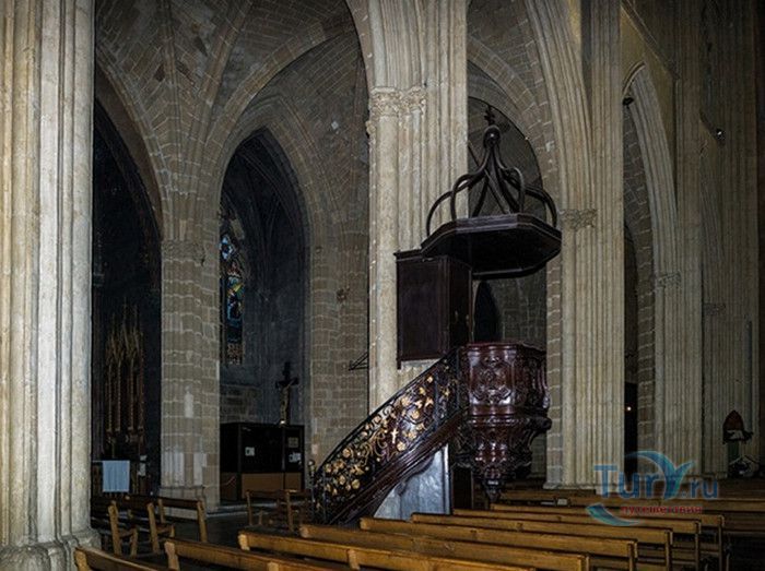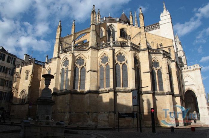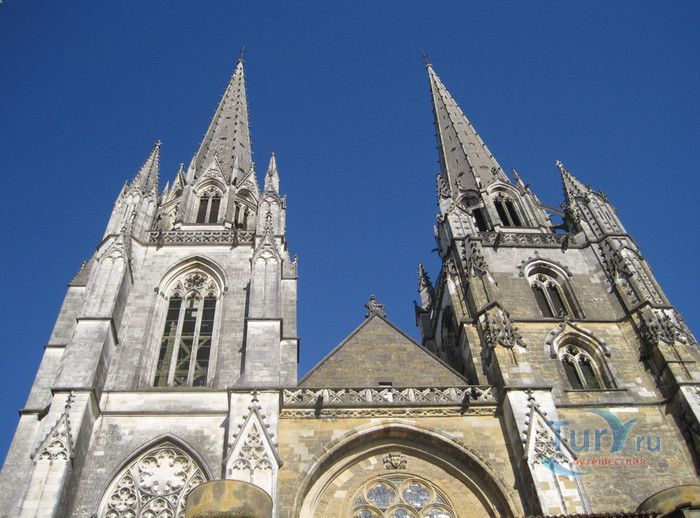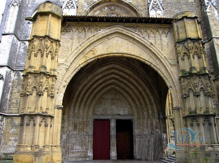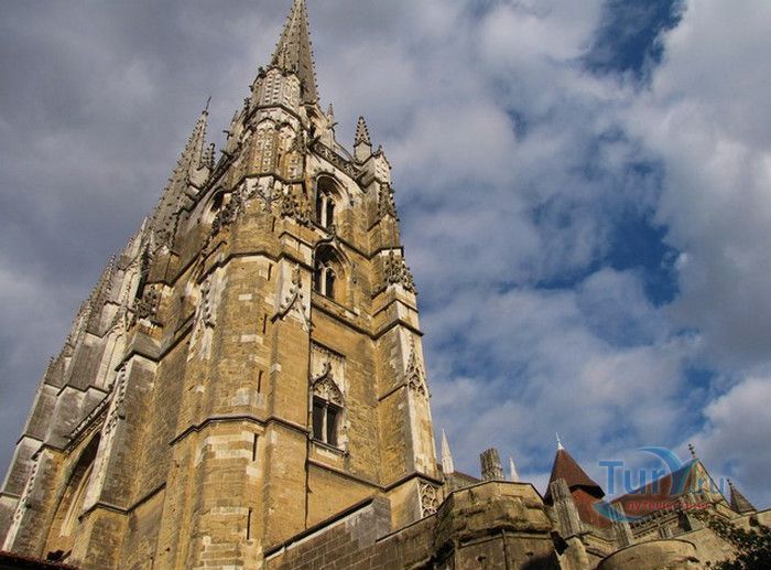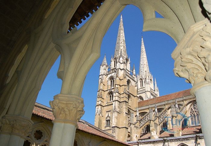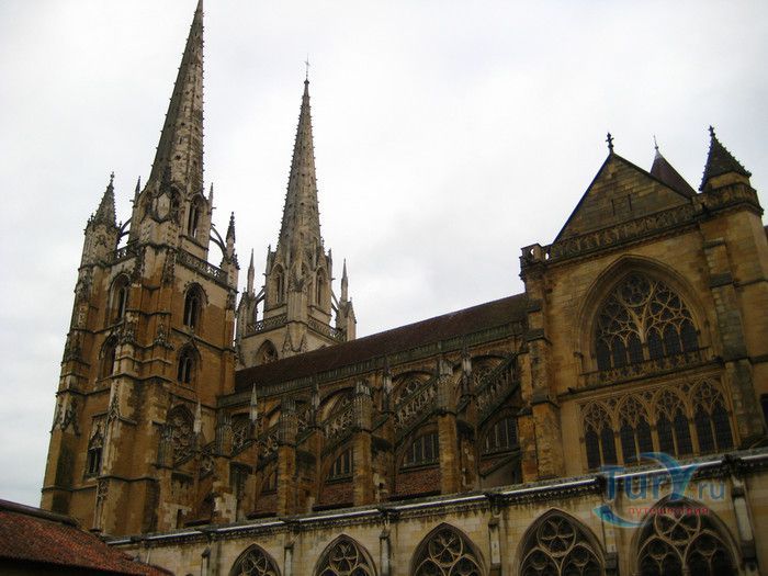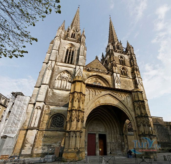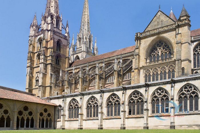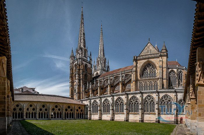 Кафедральный Собор Святой Марии де Байон расположен на юго-западе Франции, в городе Байон. Он стоит на вершине холма, с которого открывается вид на реки Нив и Адур и исторический центр города. Кафедральный Собор Святой Марии де Байон расположен на знаменитом паломническом пути в Сантьяго-де-Компостела (пути Святого Иакова), по которому верующие шли поклониться одной из главных святынь католического мира - мощам святого Иакова. Собор начали строить в середине XIII веке вместо стоявшего на этом месте и сгоревшего во время большого пожара собора в романском стиле, служившего резиденцией епископства Байон. Самой старинной частью храма является апсида и амбулатории с часовнями, датируемые XIII столетием. В XIV - XV веках были построены ризница, трансепт, центральный и боковые нефы. Завершено строительство было в XVI веке. Построен Собор в "лучистом" готическом стиле, который завоевал популярность во Франции в конце XIII столетия. Характерной чертой стиля является богатое декорирование как экстерьера, так и интерьеров. Алтарь собора украшен золочёной гравировкой с изображением различных библейских сцен, на амвоне изображён позолоченный символ Страны Басков - дуб. В оформлении интерьеров использованы изображения французских и английских геральдических гербов, скульптуры, барельефы. Снаружи собор изобилует многочисленными статуями и гаргульями. Храм имеет форму латинского креста. На западном фасаде расположен главный портал с возвышающимися по бокам двумя башнями - колокольнями, их высота составляет 70 метров. В восточной части храма находится многоугольная апсида и деамбулаторий. В южной части собора расположен клуатр, один из самых больших во Франции. Особое внимание заслуживают витражи Собора. Работы по их созданию проводились в XVI - XIX веках, на них изображены библейские сцены Ветхого и Нового заветов. В часовне святого Иеронима находится витраж 1531 года, иллюстрирующий сюжет из Евангелия от Матфея, в котором описывается исцеление от бесов дочери хананеянки, обратившейся с просьбой к Иисусу Христу. В XVIII веке была установлена кафедра из красного дерева с барельефами с аллегорическим изображением четырёх главных христианских добродетелей - веры, надежды, милосердия и справедливости. В XIX веке под руководством архитектора Эмиля Босвильвалда в Соборе были проведены крупные восстановительные и реставрационные работы экстерьера и внутренних помещений. В 2003 году муниципалитет города Байон подарил собору большой колокол работы скульптора Марка Антуана Орелана. Кафедральный Собор Святой Марии де Байон был классифицирован как национальный памятник в 1862 году, а в 1998 году внесен в список объектов Всемирного наследия ЮНЕСКО.