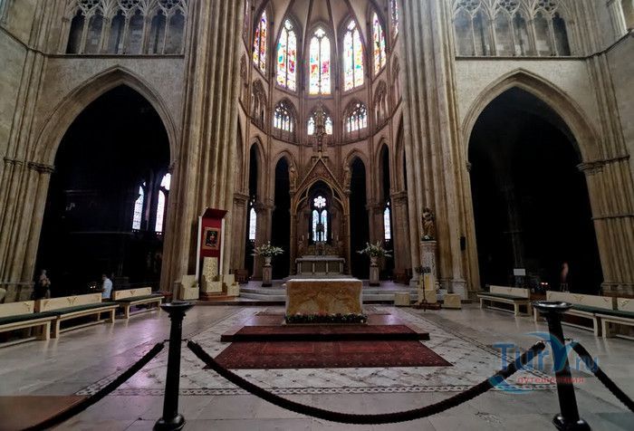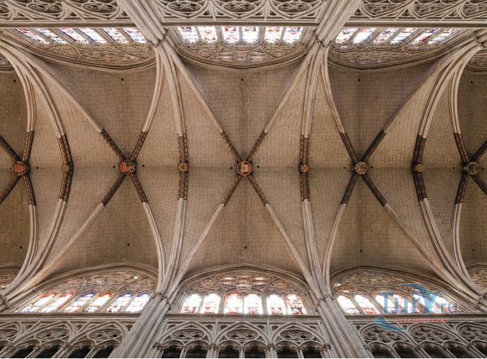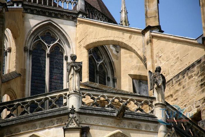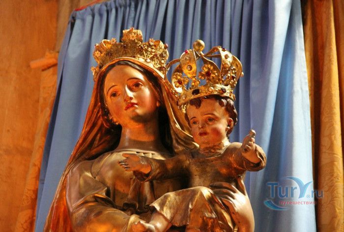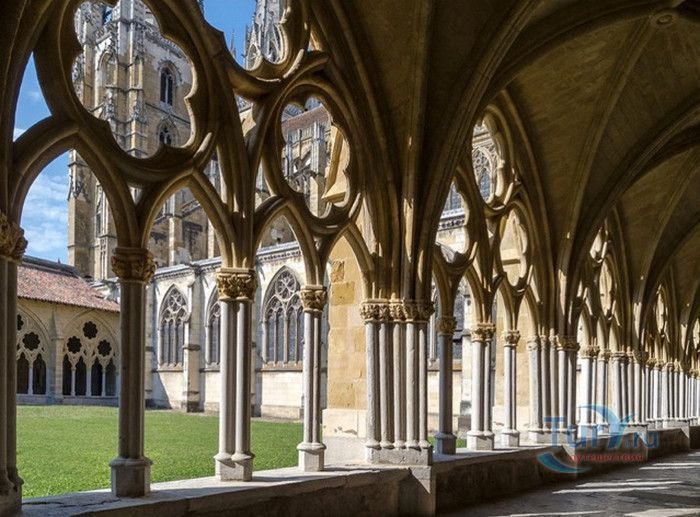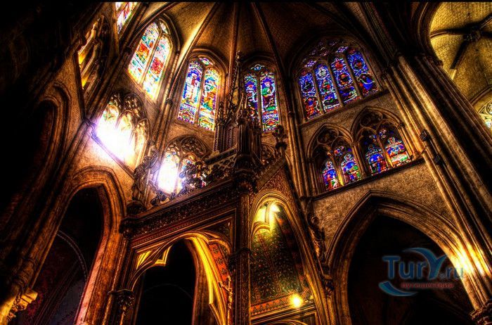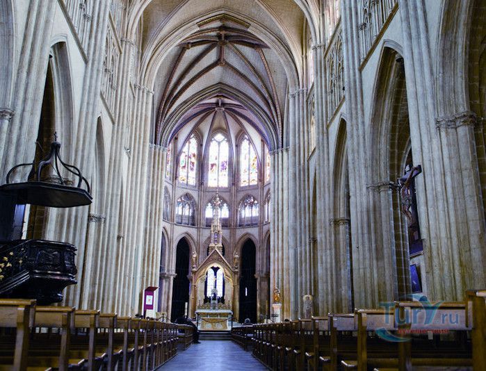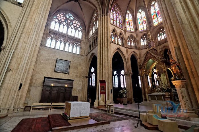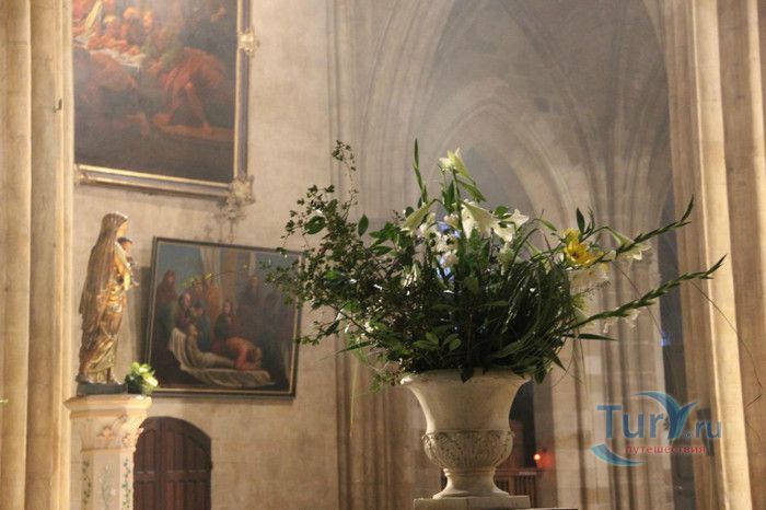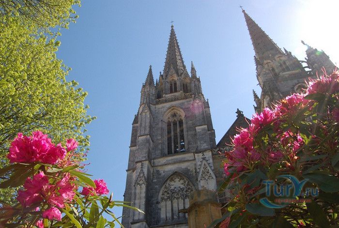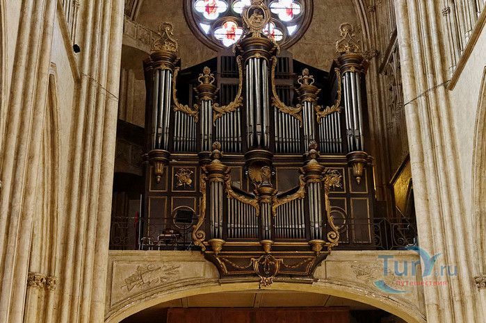 Кафедральный Собор Святой Марии де Байон расположен на юго-западе Франции, в городе Байон. Он стоит на вершине холма, с которого открывается вид на реки Нив и Адур и исторический центр города. Кафедральный Собор Святой Марии де Байон расположен на знаменитом паломническом пути в Сантьяго-де-Компостела (пути Святого Иакова), по которому верующие шли поклониться одной из главных святынь католического мира - мощам святого Иакова. Собор начали строить в середине XIII веке вместо стоявшего на этом месте и сгоревшего во время большого пожара собора в романском стиле, служившего резиденцией епископства Байон. Самой старинной частью храма является апсида и амбулатории с часовнями, датируемые XIII столетием. В XIV - XV веках были построены ризница, трансепт, центральный и боковые нефы. Завершено строительство было в XVI веке. Построен Собор в "лучистом" готическом стиле, который завоевал популярность во Франции в конце XIII столетия. Характерной чертой стиля является богатое декорирование как экстерьера, так и интерьеров. Алтарь собора украшен золочёной гравировкой с изображением различных библейских сцен, на амвоне изображён позолоченный символ Страны Басков - дуб. В оформлении интерьеров использованы изображения французских и английских геральдических гербов, скульптуры, барельефы. Снаружи собор изобилует многочисленными статуями и гаргульями. Храм имеет форму латинского креста. На западном фасаде расположен главный портал с возвышающимися по бокам двумя башнями - колокольнями, их высота составляет 70 метров. В восточной части храма находится многоугольная апсида и деамбулаторий. В южной части собора расположен клуатр, один из самых больших во Франции. Особое внимание заслуживают витражи Собора. Работы по их созданию проводились в XVI - XIX веках, на них изображены библейские сцены Ветхого и Нового заветов. В часовне святого Иеронима находится витраж 1531 года, иллюстрирующий сюжет из Евангелия от Матфея, в котором описывается исцеление от бесов дочери хананеянки, обратившейся с просьбой к Иисусу Христу. В XVIII веке была установлена кафедра из красного дерева с барельефами с аллегорическим изображением четырёх главных христианских добродетелей - веры, надежды, милосердия и справедливости. В XIX веке под руководством архитектора Эмиля Босвильвалда в Соборе были проведены крупные восстановительные и реставрационные работы экстерьера и внутренних помещений. В 2003 году муниципалитет города Байон подарил собору большой колокол работы скульптора Марка Антуана Орелана. Кафедральный Собор Святой Марии де Байон был классифицирован как национальный памятник в 1862 году, а в 1998 году внесен в список объектов Всемирного наследия ЮНЕСКО.