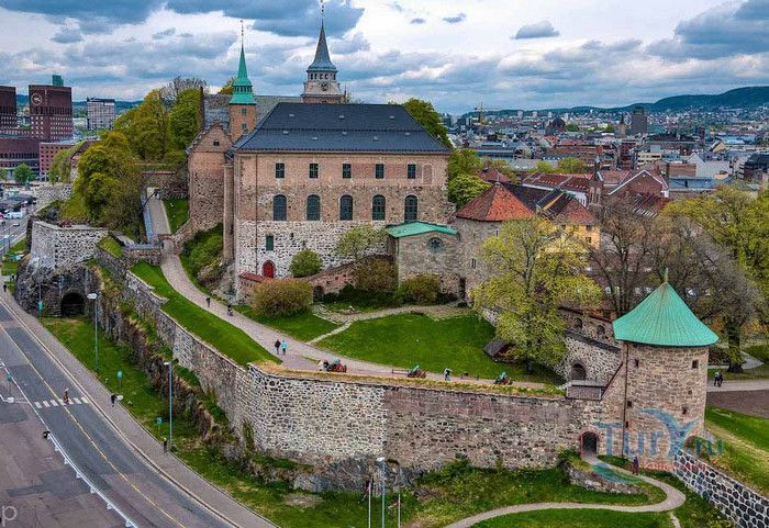 Замок и крепость Акерсхус - старинное фортификационное сооружение, в период средневековья был главным оборонным и культурным центром столицы Норвегии. Замок начали строить в конце XIII века при правлении короля Хокона V Магнуссона для защиты от врагов и бунтовщиков. Расположение замка на побережье имело большое стратегическое значение не только для защиты города, но и для развития судоходства и торговли. В 1308 году крепость получила первое боевое крещение, выдержав осаду шведских войск, а в XVI веке от удара молнии в замке возник сильный пожар, который практически полностью уничтожил строение. Замок сразу же начали восстанавливать. В середине XVII столетия, после пожара в Осло, король Кристиан IV приказывает перенести город вплотную к стенам крепости. Теперь этот район Осло называется Квадратура. Вокруг крепости были построены дополнительные оборонительные сооружения, а сам замок перестроен в стиле ренессанс. В 1716 году крепость Акерсхус выдержала осаду армии шведского короля Карла XII, взять её шведам так и не удалось. С 1811 года замковые сооружения использовались в качестве тюрьмы. Заключенных называли рабами, так как за определённую плату местные жители могли использовать их в качестве рабочей силы. В начале XX века крепость и замок Акерсхус находились в плачевном состоянии, на их месте даже планировали возвести торговые ряды. К счастью, этого не произошло, а в крепости начались реставрационные работы. Восстановительные работы были прерваны на время Второй мировой войны, тогда в крепости хозяйничало Гестапо. Нужно отметить, что за свою историю крепость успешно пережила все осады, ни разу не сдавшись врагу. Единственной капитуляцией была сдача без боя войскам нацистской Германии в 1940 году, когда норвежские власти эвакуировали Осло после нападения Германии на Данию и Норвегию, в результате чего страны объявили о нейтралитете во Второй мировой войне. После войны в замке восстановлены парадные залы датско-норвежских королей, замковая церковь, открыт доступ в мрачные подземелья и Королевский мавзолей, в котором похоронены короли Сигурд I, Хокон V, Хокон VII, Олаф V, королевы Эуфемия и Мод, наследная принцесса Марта. Замок Акерсхус используется для официальных государственных мероприятий и обедов для почетных гостей и глав иностранных государств. На территории крепости расположены Норвежский музей Вооруженных Сил и Норвежский музей движения сопротивления. В замке часто проводятся фестивали, концерты, театральные представления и выставки.
