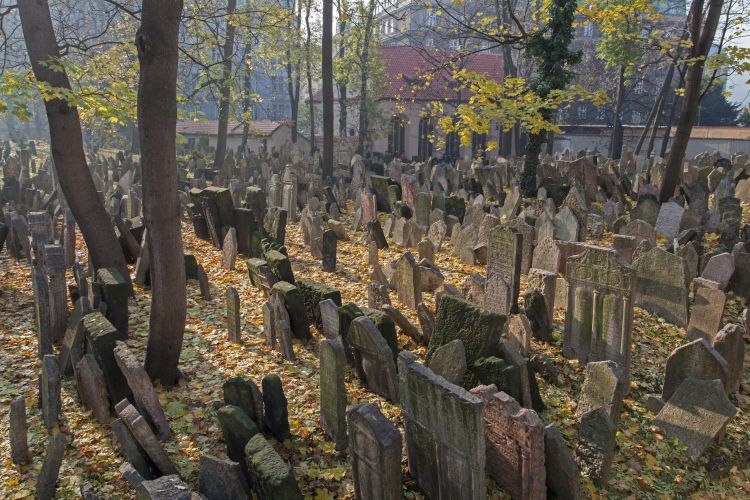 На старом еврейском кладбище около 12000 надгробий, однако, могил здесь намного больше. Многие надгробные камни осели в более низкие слои земли, другие, в особенности деревянные, разрушались со временем. Поскольку религиозные обычаи запрещают евреям разрушать старые могилы, а ограниченный участок уже не соответствовал потребностям в захоронении, то на кладбище завозили новые и новые слои земли, а старые надгробия приподнимали на более высокий уровень, таким образом со временем образовалось 12 слоев, один над другим, и во многих местах возникло характерное скопление каменных надгробий, датированных разными веками, рядом друг с другом. За кладбищем в течение многих столетий ухаживало пражское Погребальное братство, которое и начало систематически делать надгробные надписи.