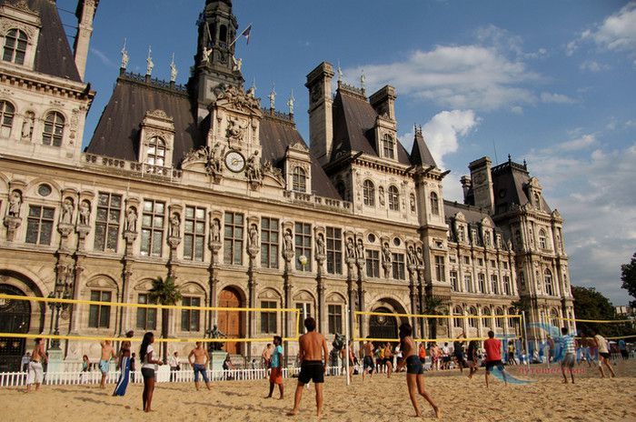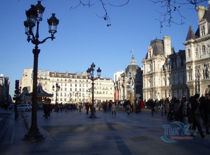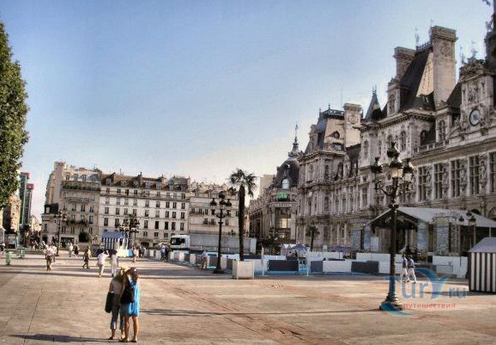 Площадь Отель-де-Виль расположена в IV округе Парижа, в старом аристократическом районе Марэ. До 1803 года площадь называлась Гревской, от французского la greve, что означает песчаный берег. Считается, что это самая старая площадь Парижа. В этом месте, на правом берегу Сены, была первая речная пристань, которая вскоре превратилась в полноценный порт. В 1141 году, по просьбе граждан Парижа, король Франции Людовик VII своим указом учредил Гревскую площадь, на которой вскоре возник большой рынок. К XIII веку Париж настолько разросся, что Гревская площадь оказалась в самом центре города. В XIV веке на Гревской площади начали происходить забастовки гильдии купцов, которых власть обложила непомерными налогами. Опасаясь кровавых погромов, французский король Карл V пошёл им на уступки, и в 1357 году глава купеческого сословия Этьен Марсель обрел статус парижского прево. Он приобрёл на Гревской площади престижный дом, известный парижанам как Дом на сваях. В XVI веке на месте этого дома по указу Франциска I начато строительство дворца, в котором разместилась Парижская ратуша (Hôtel de ville de Paris). Строительство длилось с 1533 по 1628 год, закончено было при Людовике XIII. Пока Ратуша строилась, во Франции сменилось четыре монарха. В 1803 году Гревская площадь была переименована в площадь Отель-де-Виль. А в 1871 году, во время Парижской Коммуны, здание было подожжено группой коммунаров. Пожар бушевал 8 дней, Ратуша сгорела дотла, были уничтожены архивы, книги, мебель и картины. В 1873 году французским правительством было принято решение полностью восстановить погибший дворец. Возведение нового дворца в стиле неоренессанс длилось с 1874 по 1882 год, фасад был украшен более чем сотней скульптур, изображающих знаменитых французов, родившихся в Париже. Есть у площади и кровавая история. На протяжении нескольких веков, с 1310 по 1830 годы, Гревская площадь была местом публичных казней в Париже. На ней, перед зеваками, дворянам и духовенству рубили головы, сжигали заживо еретиков, колесовали убийц, простой люд вешали, а за покушение на короля и членов его семьи четвертовали. В 1792 году на Гревской площади установили гильотину, здесь состоялась только одна казнь, вскоре гильотину перевезли с Гревской площади на площадь Революции, где и происходили почти все казни Французской революции. Сейчас на площади Отель-де-Виль ничего не напоминает о тех жутких временах. Площадь стала одним из любимейших мест отдыха парижан. Зимой здесь можно покататься на коньках на открытом ледовом катке, прямо перед Ратушей. Летом - посмотреть футбольный матч на большом экране, прокатиться на старинной карусели, отдохнуть у фонтана и даже сыграть в волейбол. На площади проводятся фестивали, концерты, развлекательные и культурные мероприятия.