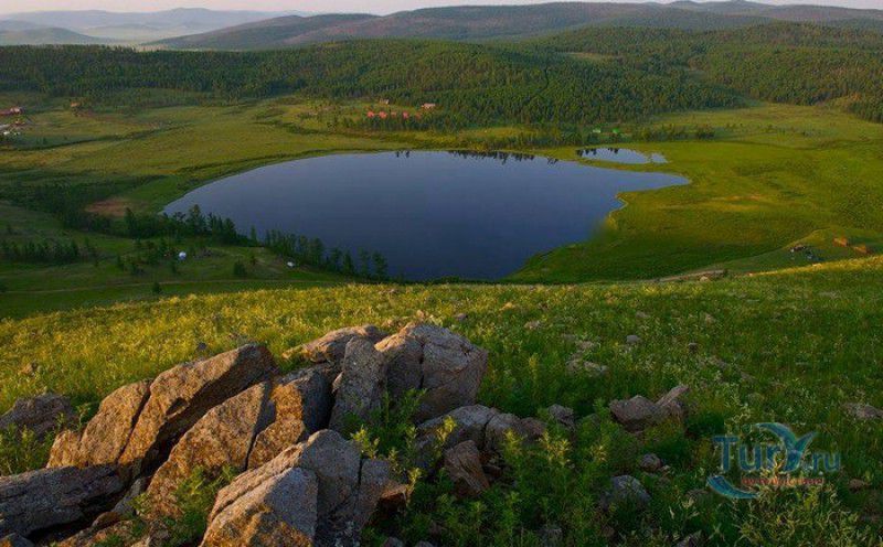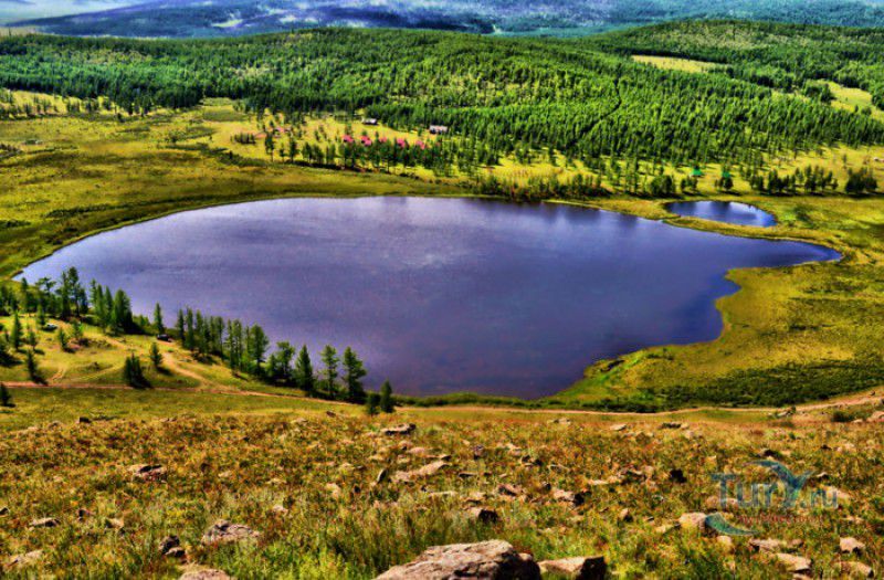 Голубое Озеро Чёрного Сердца расположено на северо-востоке Монголии, в провинции Хэнтий, в 35 километрах от посёлка Цэнхэрмандал. Озеро находится недалеко от реки Цэнхэр, у подножия горы Харзүрх уул (Чёрное сердце), на высоте 1675 метров над уровнем моря. Пресноводное озеро питают два подземных источника, вода в нём чистая и прозрачная, имеет насыщенный голубой оттенок, благодаря чему озеро и названо Голубым. Здешние пейзажи очень живописны - склоны Чёрной горы покрыты густым лесом, на берегах озера растут берёзы и лиственницы, во время короткого лета долина, в которой озеро расположено, покрывается ярким цветочным ковром. С Голубым озером Чёрного сердца связано одно из самых важных событий в монгольской истории - на его берегах в 1189 году Тэмуджин был наречён Чингисханом и провозглашён ханом улуса Хамаг Монгол (Все Монголы), о чём упоминается в книге "Сокровенное сказание монголов", написанной в 1240 году. В честь 840-летия со дня рождения Чингисхана на берегу Голубого озера был установлен памятник основателю Монгольской империи, вокруг которого полукругом расположены 36 деревянных статуй, на которых изображены ханы из рода Чингисхана, а также статуи его отца Есугея, матери Оэлун, жены Бортэ, шамана Кохэчу и девяти его верных нукеров (генералов). На берегу Голубого озера построено несколько туристических баз.
