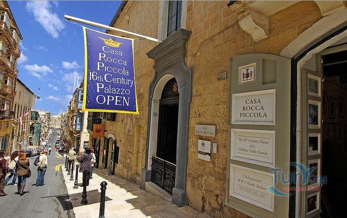 Палаццо Каса Рокка Пиккола расположен в городе Валлетта - столице Мальты. Дворец построен 400 лет назад, во времена владычества на острове рыцарей Мальтийского ордена. Особняки в Валлетте строились с пышностью и великолепием, способными конкурировать с дворцами Парижа и Венеции. Палаццо Каса Рокка Пиккола принадлежал адмиралу Дон Пьетро Ла Рокка, в честь которого и был назван, сейчас в нём живёт семья маркиза де Пиро. Дворец состоит из 50 помещений, большинство из которых открыты для публики. В течение 200 лет обстановка и убранство дома не меняются. Парадная мраморная лестница ведёт в помещения верхнего этажа, стены вдоль лестницы украшают полотна, написанные мальтийским художником Рамиро Кали. Огромная люстра из богемского хрусталя, изготовленная в VIII веке, старинное бюро, которое в открытом виде превращается в мини часовню, портреты пап Климента XI и Климента XIV украшают интерьер Большого зала. В палаццо представлена большая коллекция картин, семейных портретов, мебели, посуды, изделий из серебра, датированных XVI - XX веками. Огромную историческую ценность представляют семейный архив де Пиро, коллекция старинных костюмов, кружев, библиотека. В часовне, которая примыкает к Большому залу дворца, находятся старинная икона Божьей Матери и распятие. В Голубом зале хранятся уникальные серебряные хирургические инструменты, принадлежавшие врачу ордена Госпитальеров. Мальтийские рыцари были не только военным и религиозным орденом, их медицинские познания были на очень высоком уровне, они умели лечить катаракту глаз и даже удалять жёлчный камень. Частное подземное бомбоубежище, в котором прятались во время бомбардировок Валлетты, было построено в 1935 году. Оно представляло собой сеть подземных тоннелей, которые вели в каменное помещение, способное вместить до 100 человек. Пятничными вечерами хозяин дворца проводит экскурсию "Тур с шампанским", в конце которого гостей маркиза угощают бокалом шампанского.