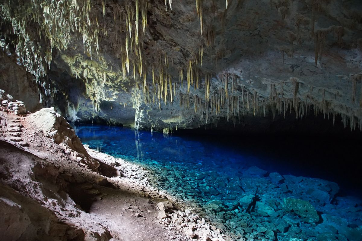 Gruta do Lago Azul расположен в 20 км от города Бонито, в штате Мату-Гросу-ду-Сул, он содержит две пещеры с интересными, но хрупкими известковыми образованиями, и был включен в список охраняемых районов с 1978 года.