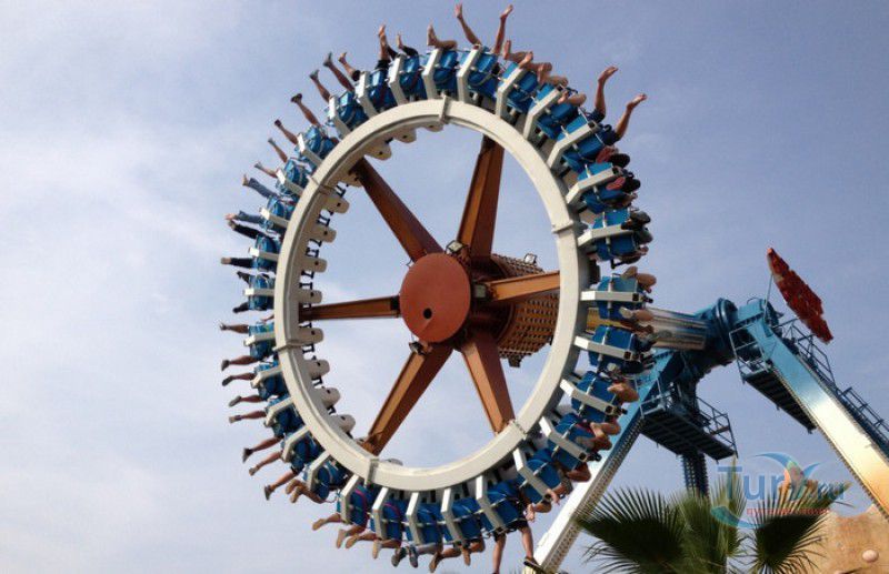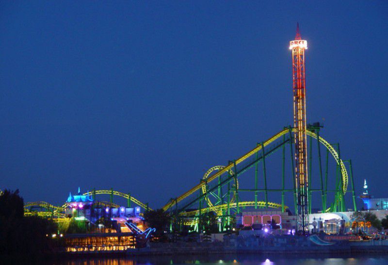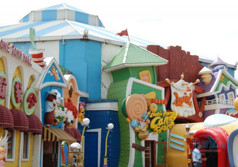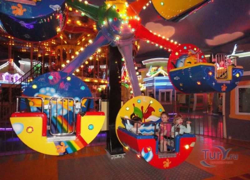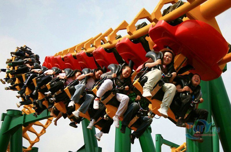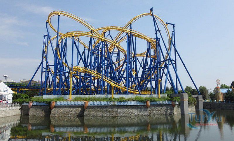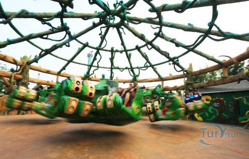 Сумасшедший город - это спуск в лодке по водному каналу с 20-метровой высоты, двухярусная карусель, поднимающая своих пассажиров на 10-метровую высоту, завод по производству мыльных пузырей и космическая станция.