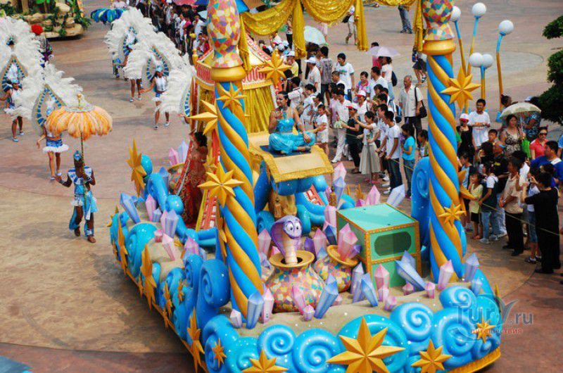 Гостей в парке развлекают сотни танцовщиков, гимнастов, акробатов, клоунов и аниматоров, здесь проходят водные парады, театрализованные и световые шоу, рыцарские поединки, ковбойские перестрелки, пиратские бои. Вечером в Дискавери Лэнде запускают красочные салюты и фейерверки. В парке работают сувенирные магазины, бутики, рестораны и кафе, желающие остаться в парке на несколько дней, могут остановиться в комфортабельном отеле.