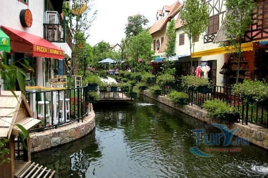 Он представляет из себя тематический торгово-развлекательный центр, сделанный в виде небольшого городка северной Франции - все дома выдержаны в этом стиле. Здесь есть пруды с белыми и черными лебедями, центральная площадь, множество мест с различными композициями для фотографирования.