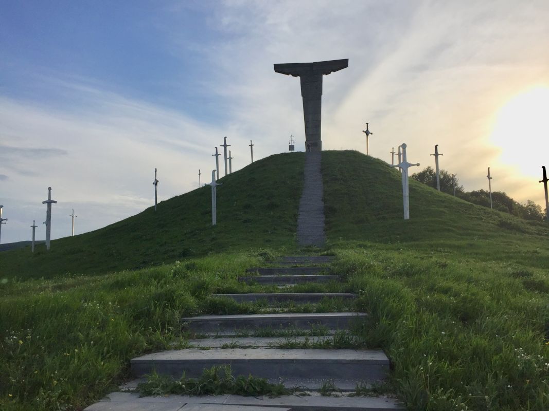Сейчас здесь, на зелёных склонах Триалетского хребта, в 20 км. от столицы, создан удивительный Мемориал, способный тронуть душу любого человека, не обязательно грузина. Суровые бронзовые воины, вперемешку со светлыми мечами, воткнутыми в землю и напоминающими кресты. Кресты, как символы павших здесь людей…