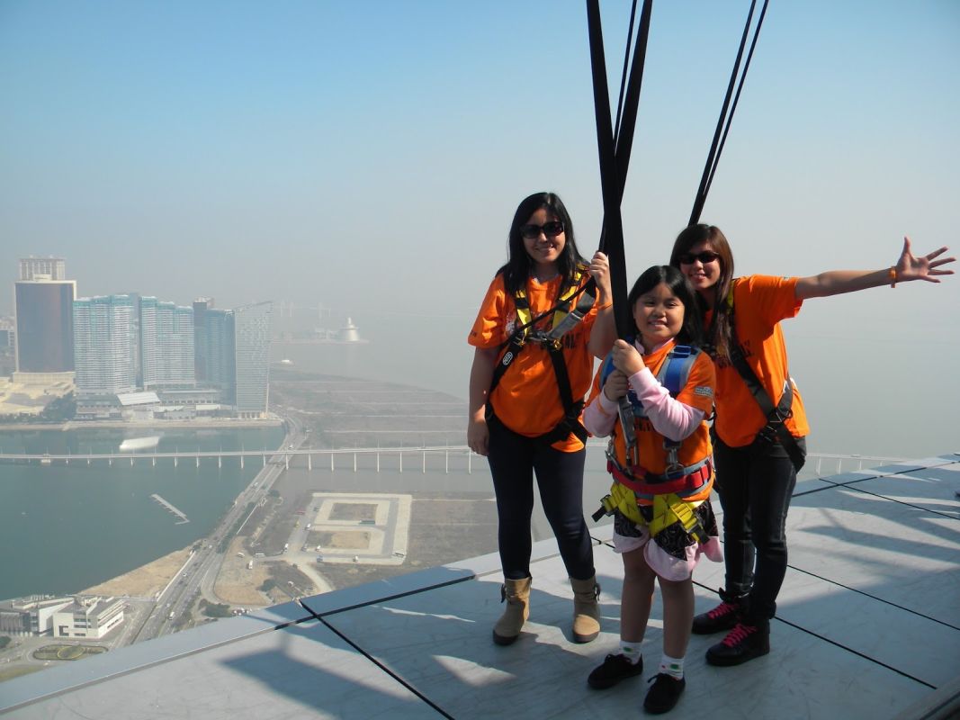 Посетитель защищен двумя стальными канатными системами и имеет возможность попытаться наклониться через край прохода в трех заданных точках.