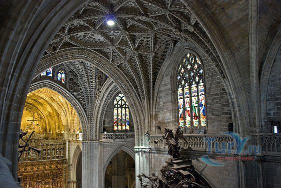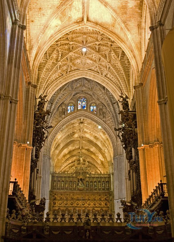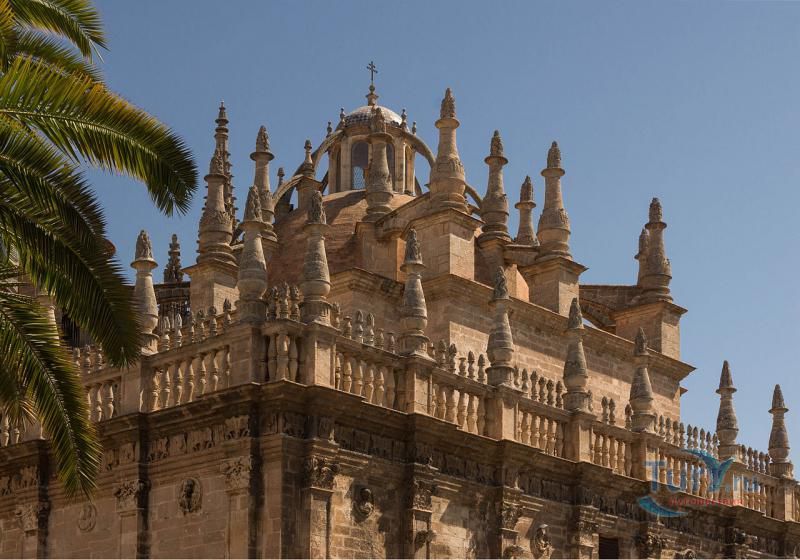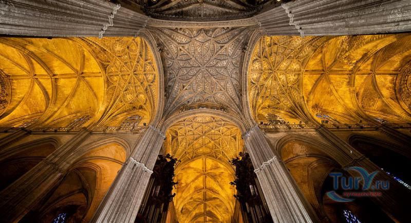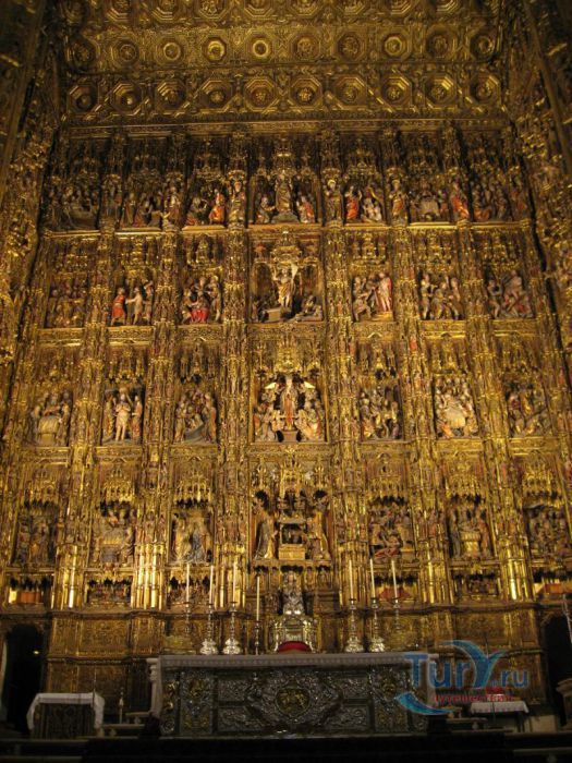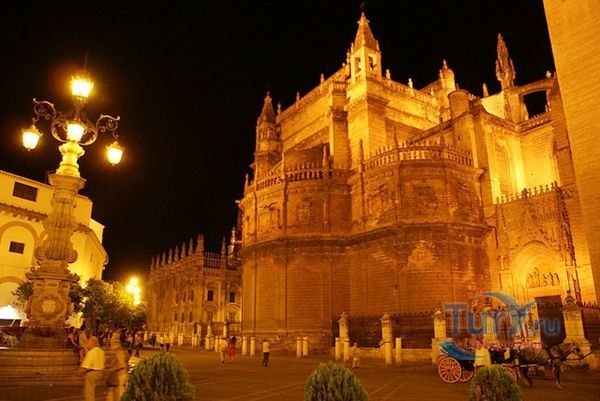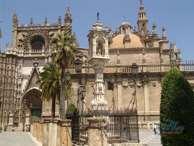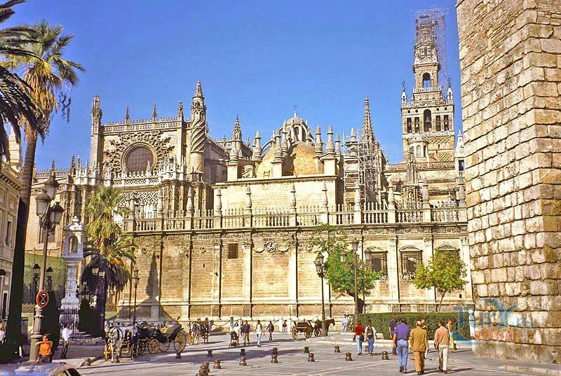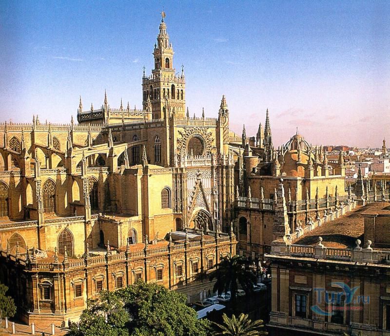 Построенный на месте мечети Алмохад, собор Мария-де-ла-Седе - это крупнейшее готическое здание в Европе. Его главный алтарь считается самым большим в христианском мире. Собор был построен, чтобы продемонстрировать благосостояние Севильи, и стал большим торговым центром в годы после Реконкисты. Во время планирования строительства собора член собрания каноников записал "у нас должна быть такая церковь, чтобы каждый, кто её увидит, думал, что мы сошли с ума". В 1987 году Собор Севильи был внесен в список мирового наследия ЮНЕСКО. В строительстве собора использованы несколько колонн и элементов мечети. Наиболее известная Хиральда, изначально минарет, который был превращен в колокольню. Она украшена статуей, представляющей веру. Хиральда - наиболее знаменитый символ города. В сокровищнице собора работы Гойи, Мурильо, Сурбарана. После прогулки по темным интерьерам собора вы попадете в освещенный солнцем двор с апельсиновыми деревьями с их свежим цитрусовым запахом и поющими птицами.